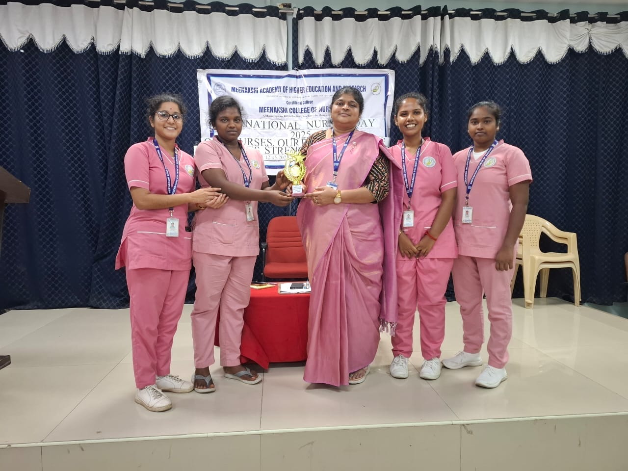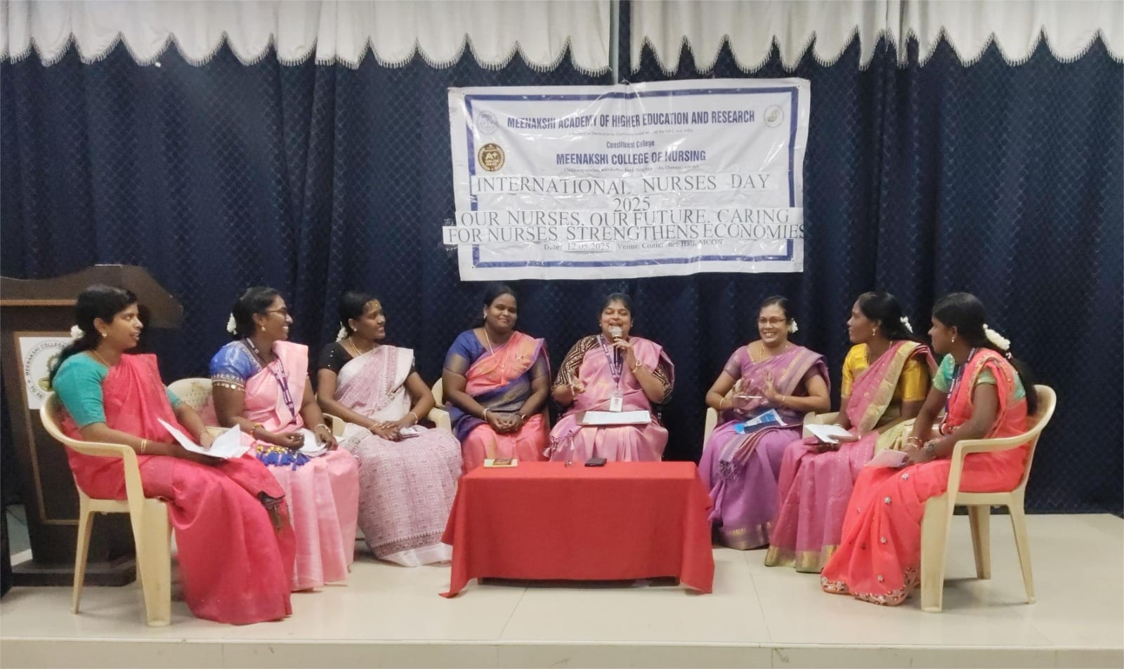 The Student Nurses Association (SNA) unit of Meenakshi College of Nursing (MCON) commemorated International Nurses Day on May 12, 2025, from 2:00 PM to 4:00 PM in the Conference Hall, with a total of 37 participants including students and faculty. The event centered on the impactful global theme: “Nurses, Our Future – Caring for Nurses Strengthens Economies.”