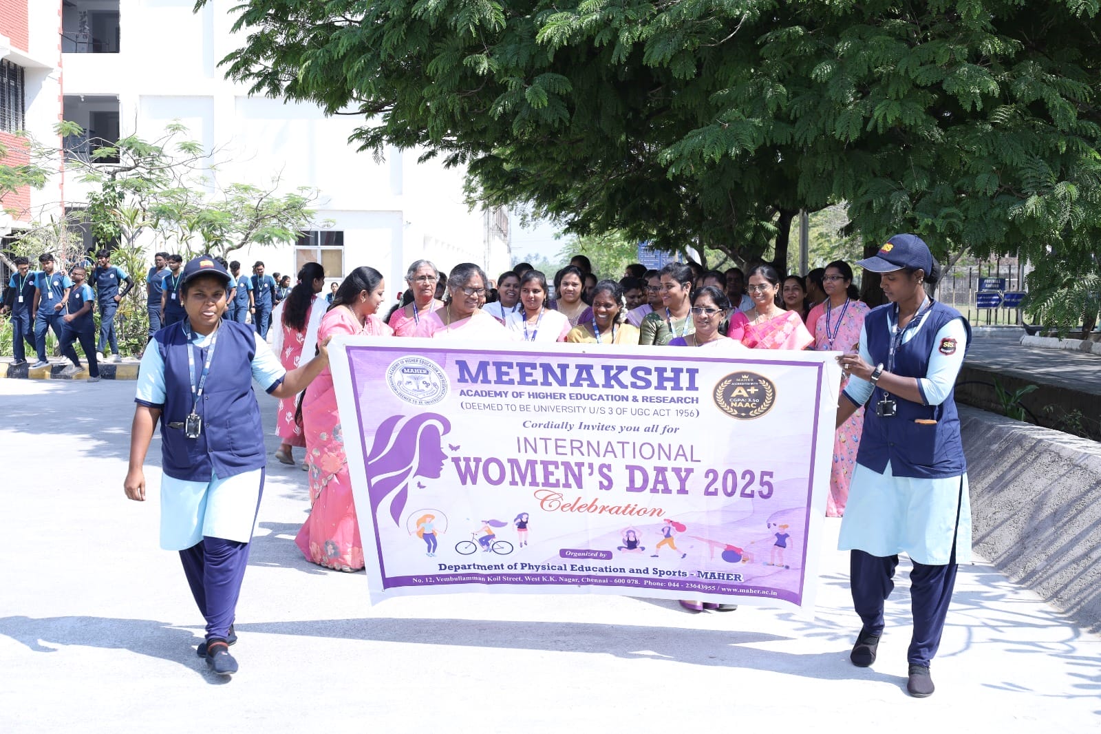 Sports & Games Committee, Meenakshi Medical College Hospital & Research Institute (MMCH&RI) celebrated International Women’s Day 2025 on March 7, 2025. The event was organized for all women faculty and staff of MMCH&RI, with the aim of recognizing and appreciating their contributions. The celebration commenced with a walkathon at 10:00 AM, starting from the Pre-Clinical Block. The dress code for the walkathon was pink or purple. Following the walkathon, a series of sports events were organized, including: Throwball, Shotput, 30-meter run. Winners of the sports events were awarded certificates.