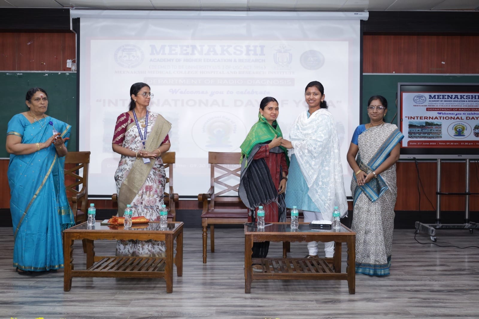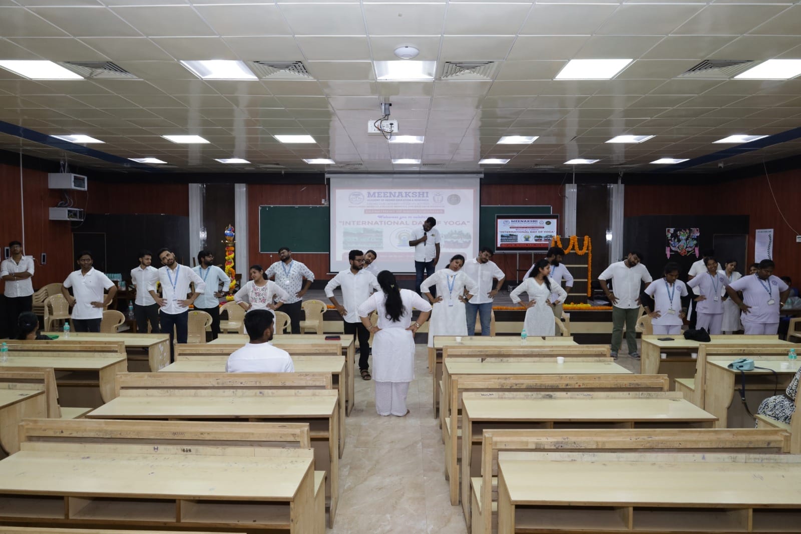 The Department of Radiodiagnosis, Meenakshi Medical College Hospital & Research Institute (MMCHRI) observed International Yoga Day with a Health Awareness Program on 21st June 2025. The event, held at the New Lecture Hall (250) aimed to promote awareness about the importance of yoga in fostering both physical and mental well-being.