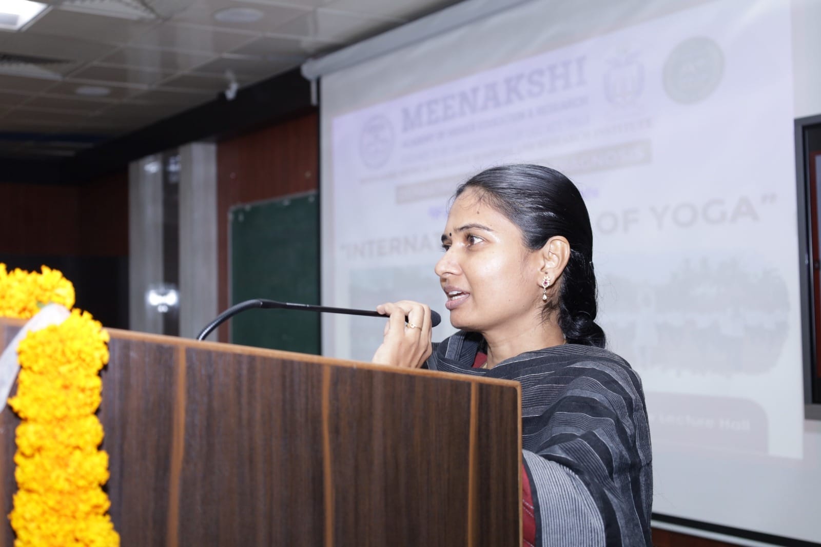 Dr. P. Karthika, Assistant Professor, Faculty of Yoga Sciences and Therapy (FYST), served as the Chief Guest and delivered an insightful address on the relevance of yoga asanas in modern-day health practices, emphasizing their therapeutic value in everyday life.