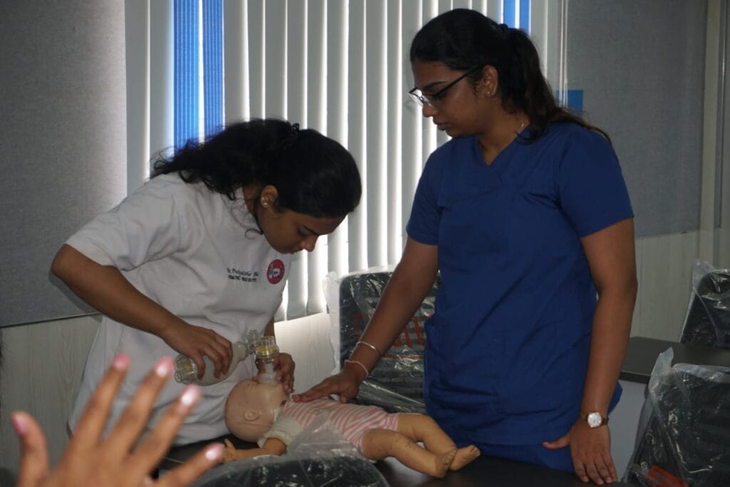 Lectures and hands-on training program were conducted on Basic Life Support and Cardiopulmonary resuscitation using adult and infant mannequins. Various emergency clinical scenarios were discussed and demonstrated using automated external defibrillators in case of cardiac arrest. The hands-on-workshop greatly benefited the postgraduate trainees and interns of the college.