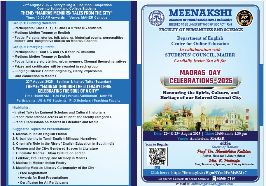 Department of English, Faculty of Humanities and Science, MAHER and Centre for Online Education In collaboration with the Students’ Council, MAHER