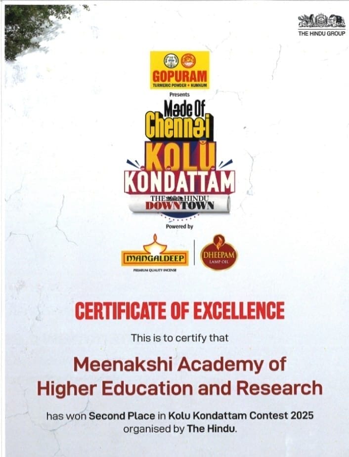 MAHER proudly received the First Runner-Up Award in the Corporate Kolu Contest organized by The Hindu. The prize distribution ceremony was held on 12th October 2025, celebrating organizations that showcased creativity and cultural spirit through their festive Kolu displays.