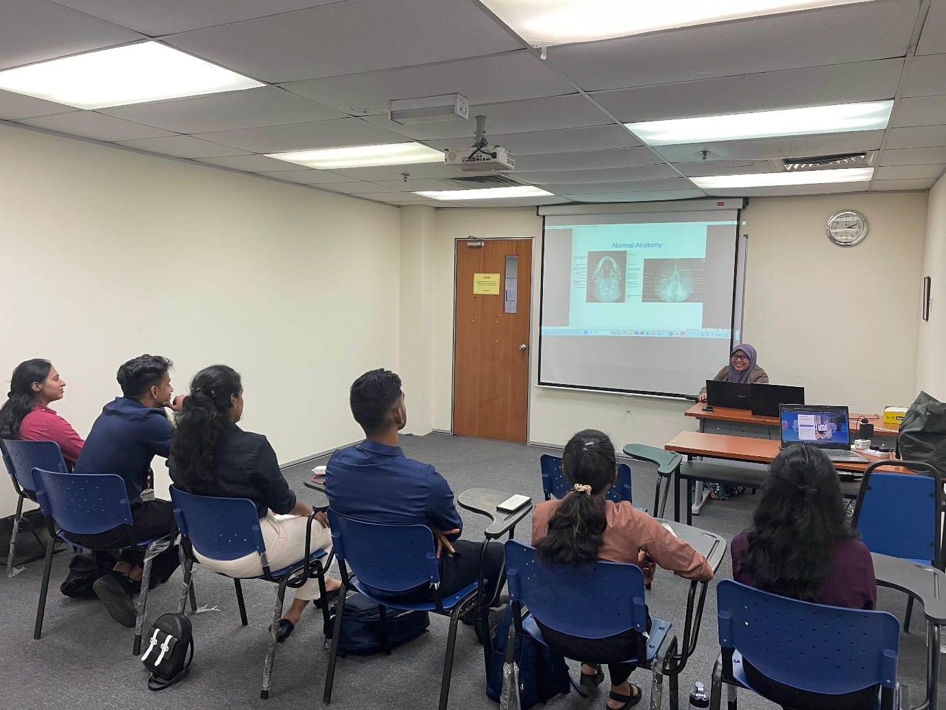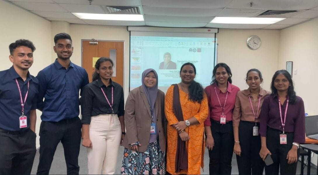 After lunch at 1:30 PM, the delegation attended an insightful lecture on Dental Radiography delivered by Associate Professor Dr. Aspalilah. The session covered key areas such as the fundamentals of radiology, principles and types of radiographic techniques, intraoral and extraoral imaging methods, identification of anatomical landmarks, common artefacts in dental radiography, and advanced imaging technologies and their applications in modern dental practice.