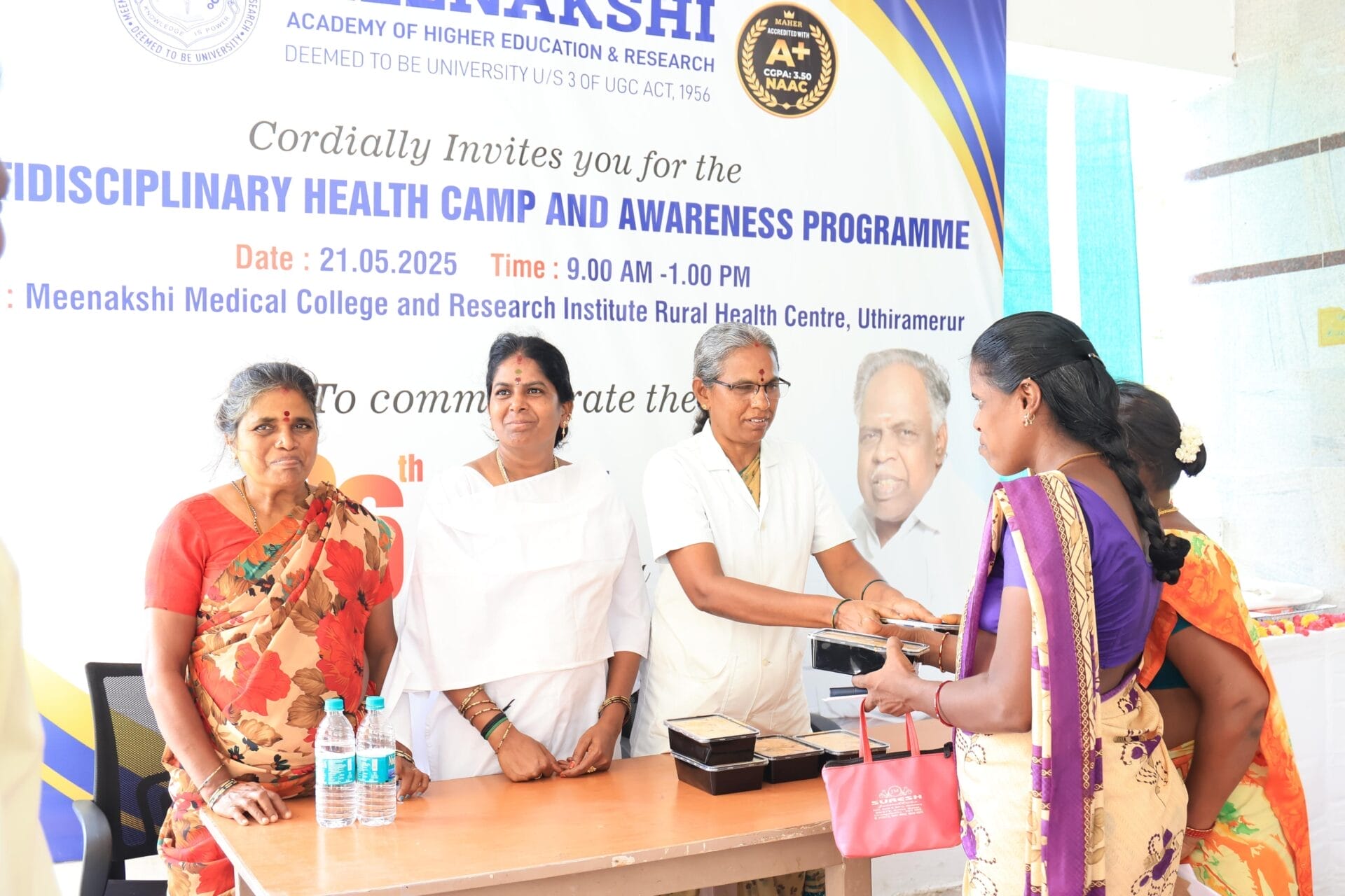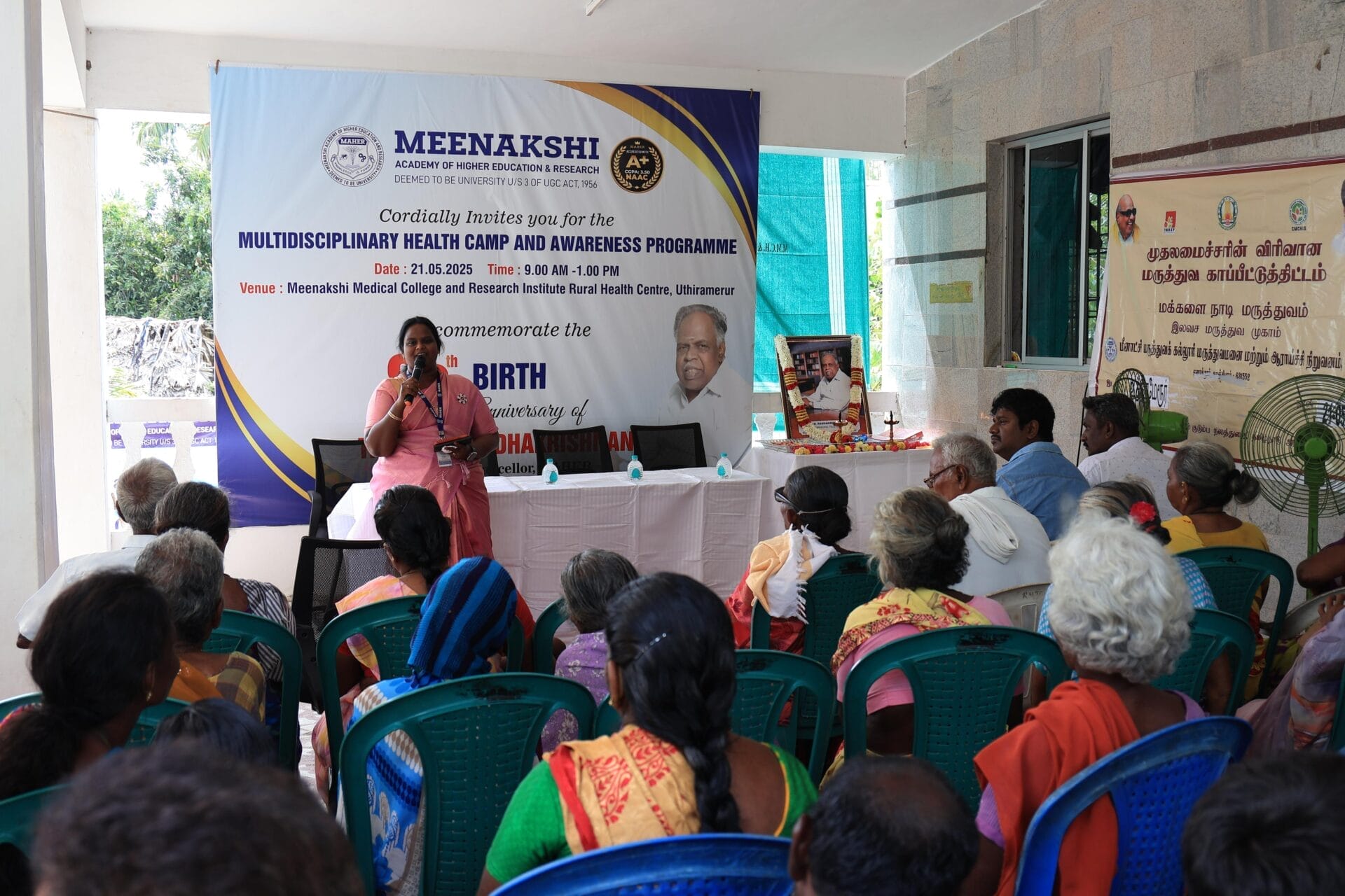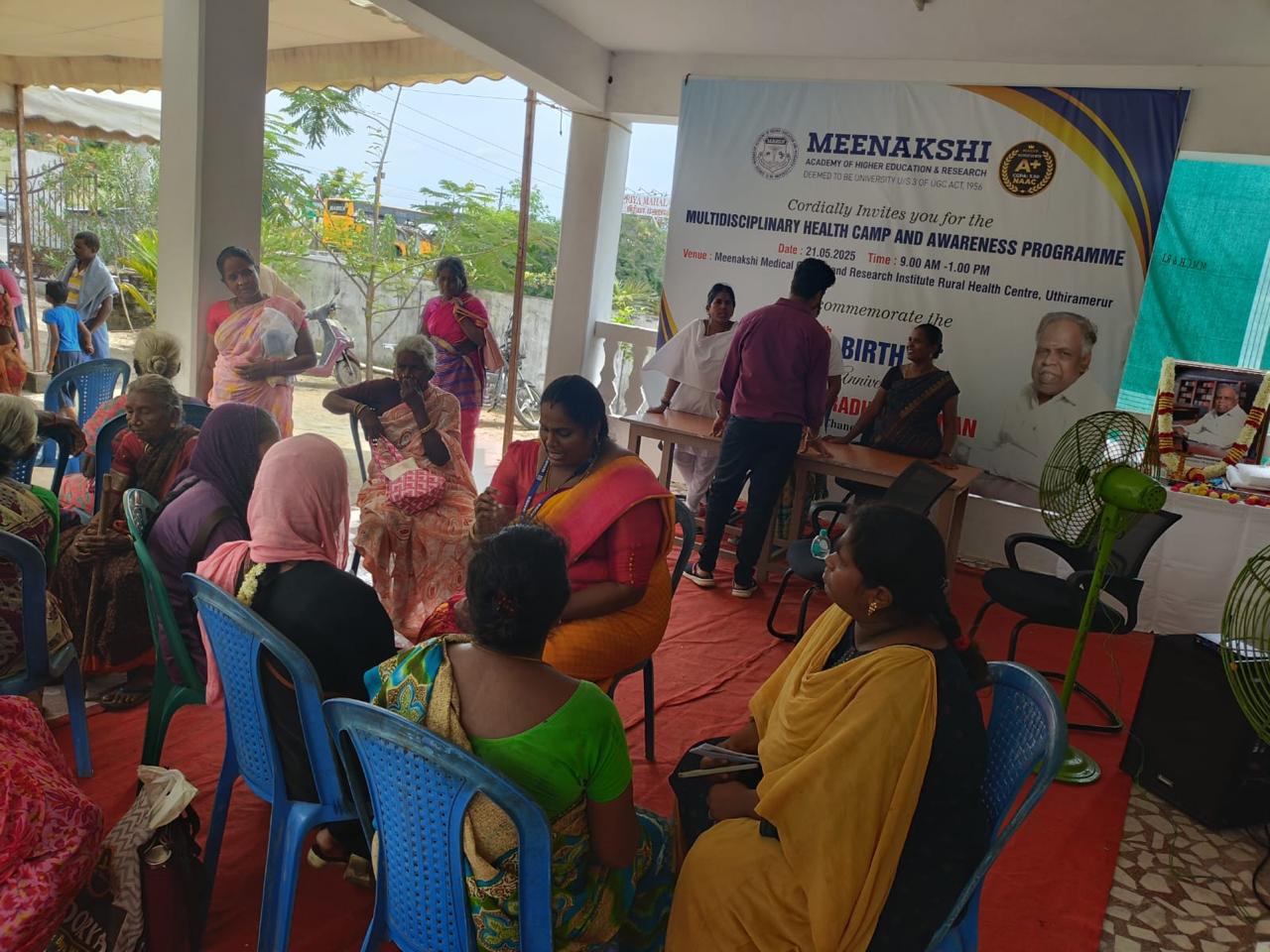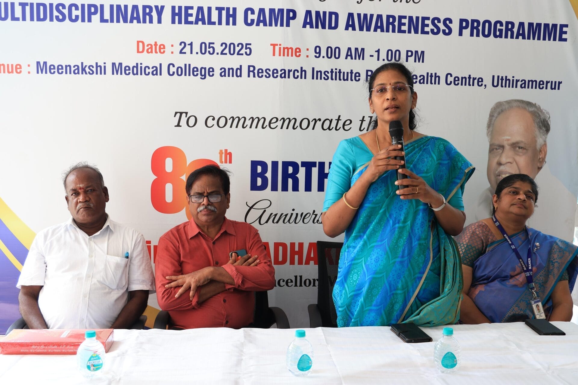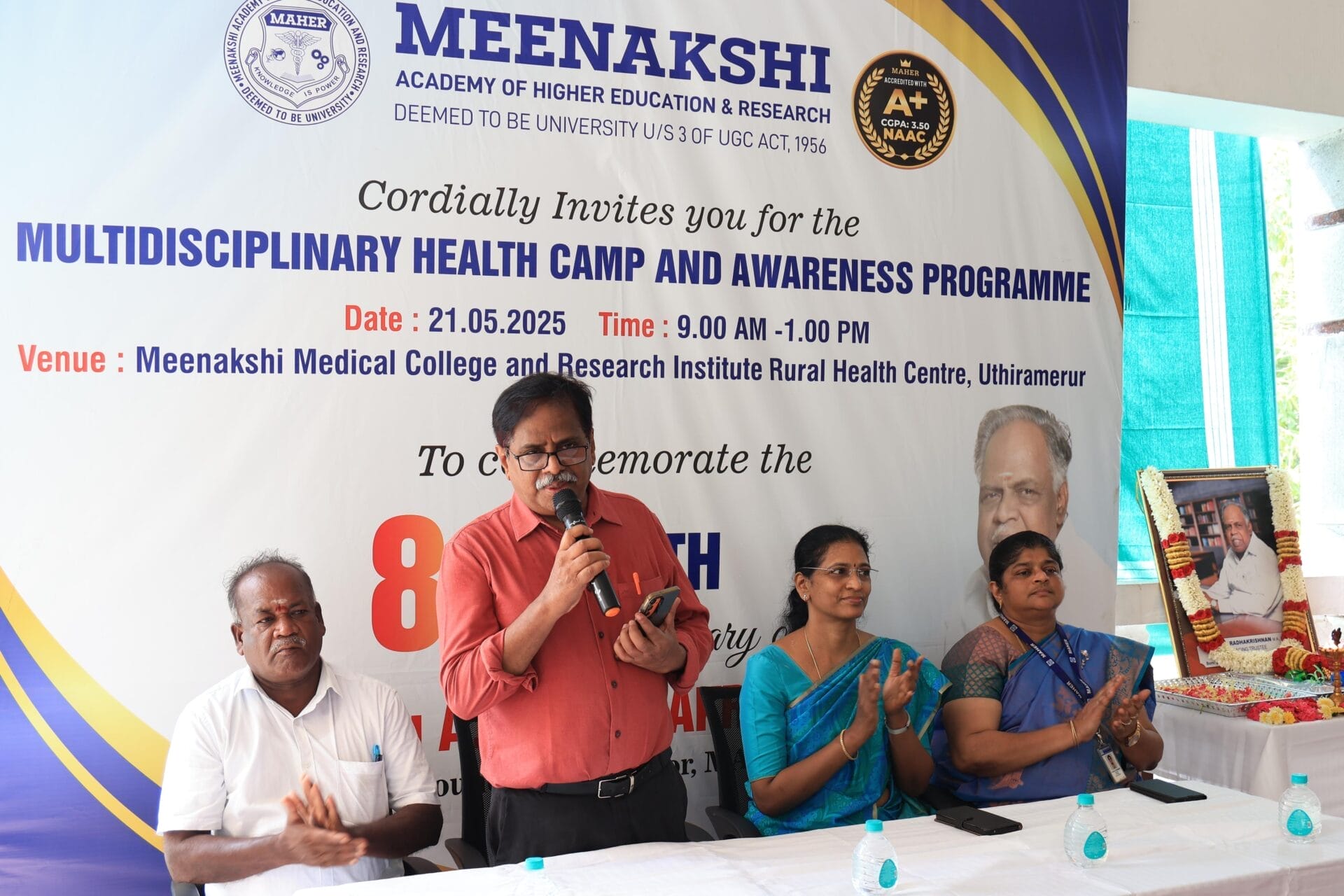 In a heartfelt tribute to the 86th birth anniversary of the esteemed Founder Chancellor, Thiru. A.N. Radhakrishnan, Meenakshi Academy of Higher Education and Research (MAHER) organized a comprehensive multispecialty health camp and awareness program on 21st May 2025. The event was held at the Rural Health Centre of Meenakshi Medical College and Research Institute in Uthiramerur, reflecting the founder’s enduring commitment to community health and social welfare.