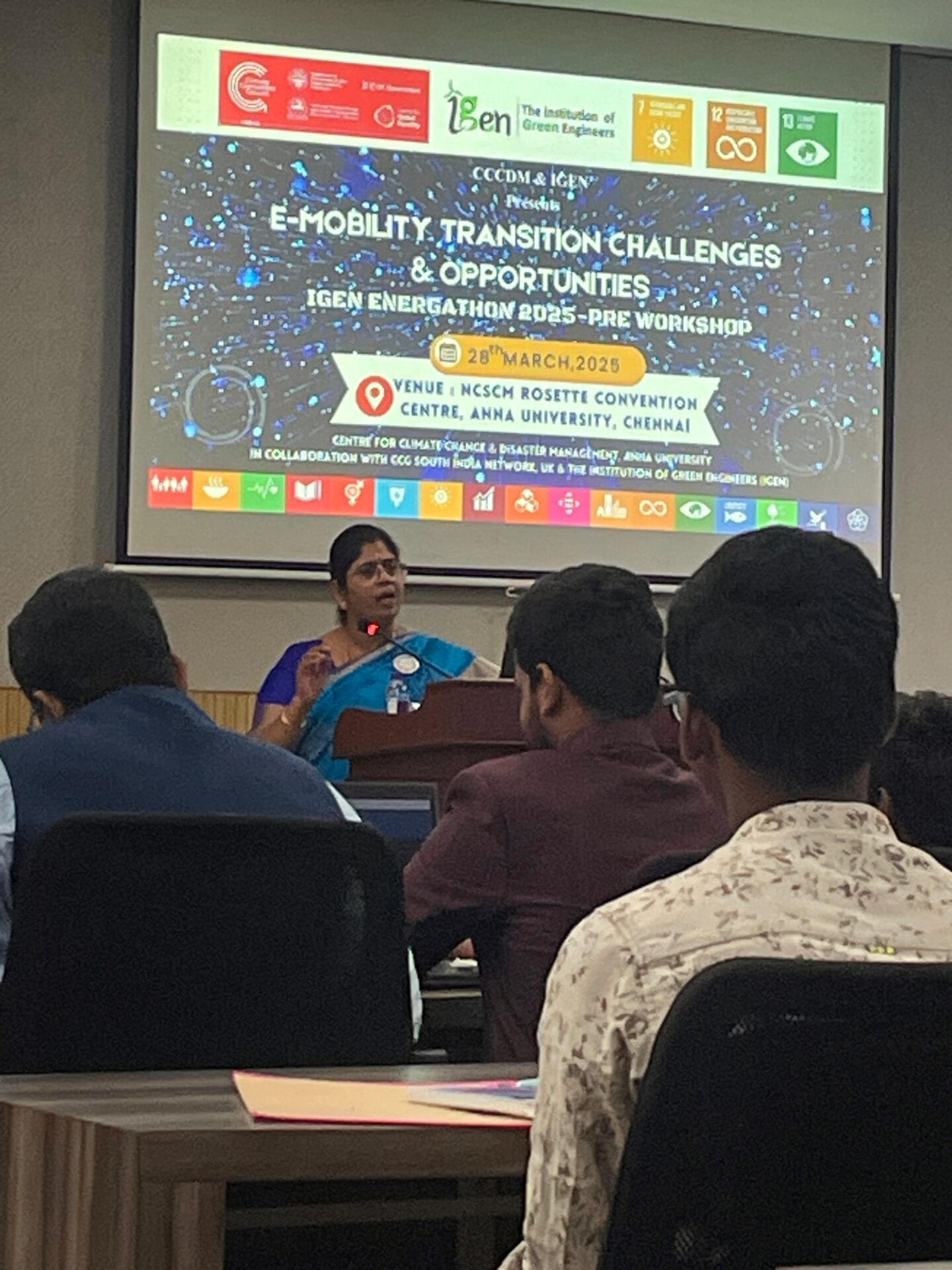 On March 28th, 2025, a one-day conclave titled “E-Mobility Transition: Challenges & Opportunities” was held at Anna University, Chennai, jointly organized by the Climate Compatible Growth South India Network and IGEN. The event brought together experts, academicians, and students to explore the future of sustainable transportation in India.