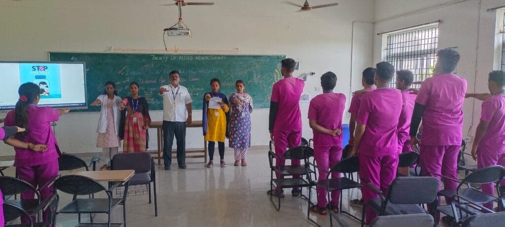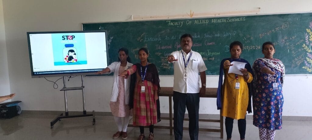 On August 12, 2024, students of the Faculty of Allied Health Sciences, MAHER, participated in the Mass Anti-Drug Pledge on Drug-Free Tamil Nadu, initiated by the Hon’ble Chief Minister of Tamil Nadu. Dr. V. Ramnath, Principal, and faculty members attended the event.