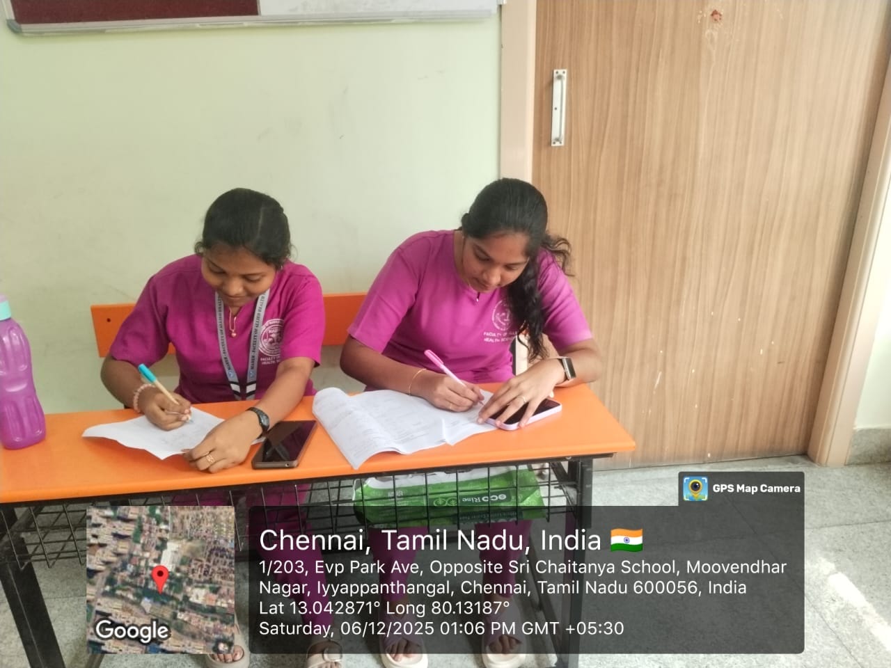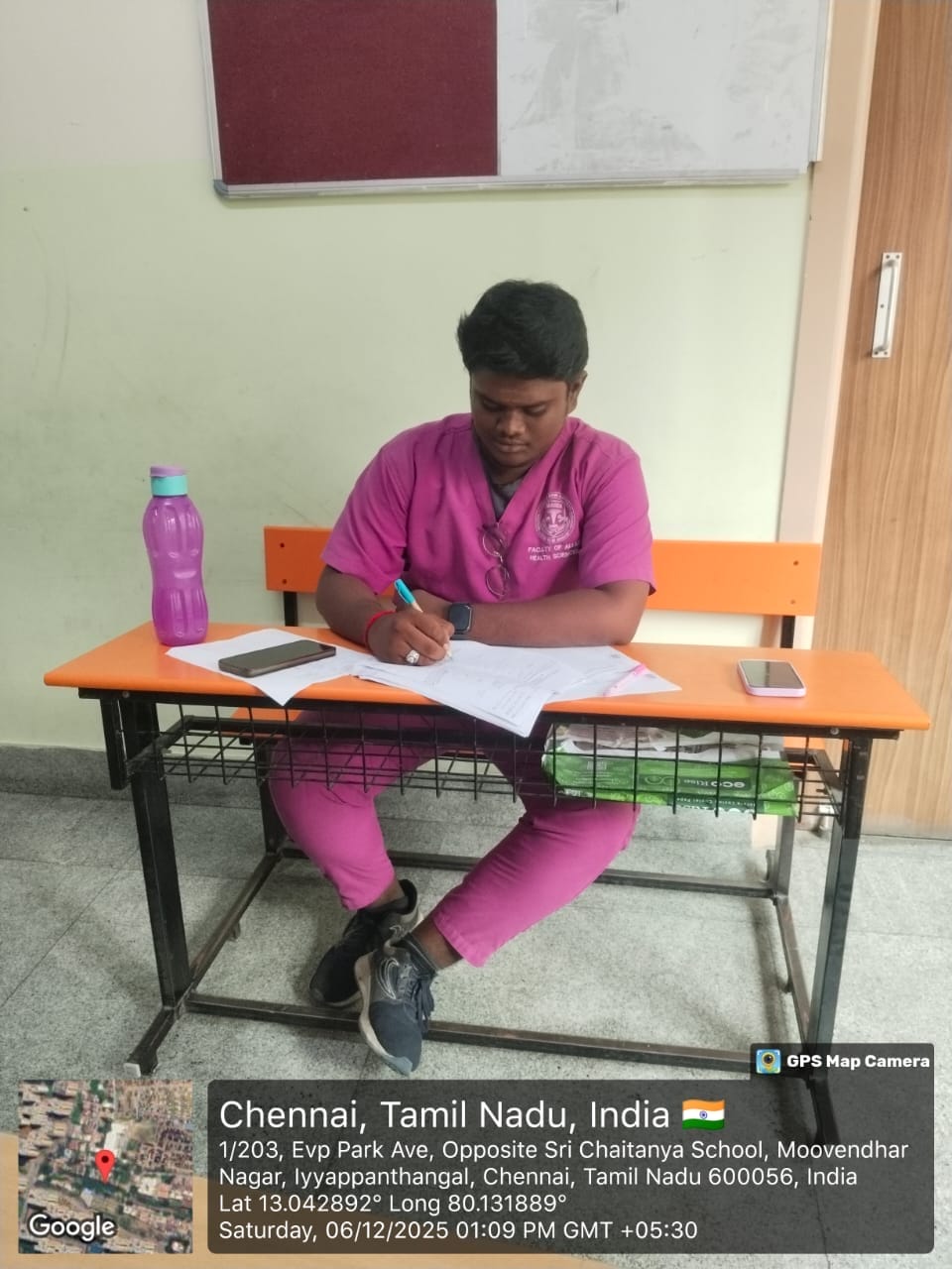 The III year B.Sc. Anaesthesia Technology and B.Sc. Physician Assistant students of Meenakshi College of Allied Health Sciences (MCAHS) actively participated in the Nalam Kaakum Stalin Health Camp held at Sri Chaitanya Techno School, Iyyappanthangal, Chennai, on 06.12.2025. The camp was organized with the aim of delivering essential healthcare services and promoting health awareness among the local community.