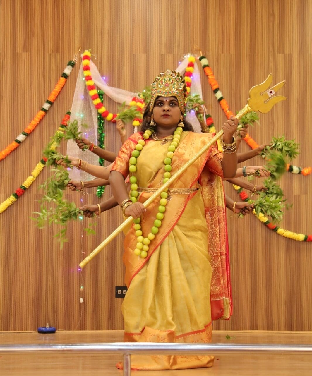 The evening radiated cultural vibrance and devotion as students of MCAS celebrated Goddess Brahmacharini, symbolizing penance, spiritual strength, and inner purity. Soulful devotional songs set a serene tone, while students dressed as gods and goddesses brought mythology to life. Graceful traditional dances showcased the talent and enthusiasm of the students, filling the auditorium with festive energy.