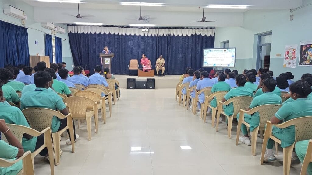 The Internal Complaints Committee (ICC) of Meenakshi College of Nursing organized an Awareness Programme on “Creating a Safe and Supportive Work Environment” on 7 January 2026, with the objective of sensitizing students and faculty on workplace safety, dignity, and the prevention of harassment. The programme began with a soulful invocation rendered by the college choir, setting a serene and respectful tone for the session. This was followed by a warm welcome address delivered by Ms. Sivasankari, B.Sc. (N) II Year, MCON.