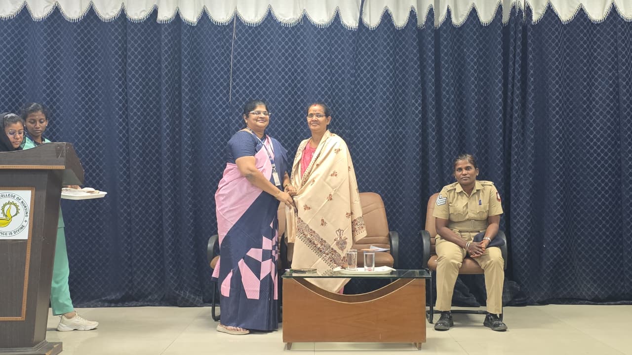 The awareness session was further enriched by the presence of distinguished resource persons, Mrs. S. A. Souvarna Latha, Sub Inspector of Police, Mangadu, Chennai, and Mrs. L. Bakkiyalakshmi, Head Constable of Police, Mangadu, Chennai. They created strong awareness on the prevention of sexual harassment by sharing practical insights, legal perspectives, and real-life case studies. The resource persons elaborated on complaint handling procedures and encouraged students to be vigilant, informed, and proactive in safeguarding workplace ethics.