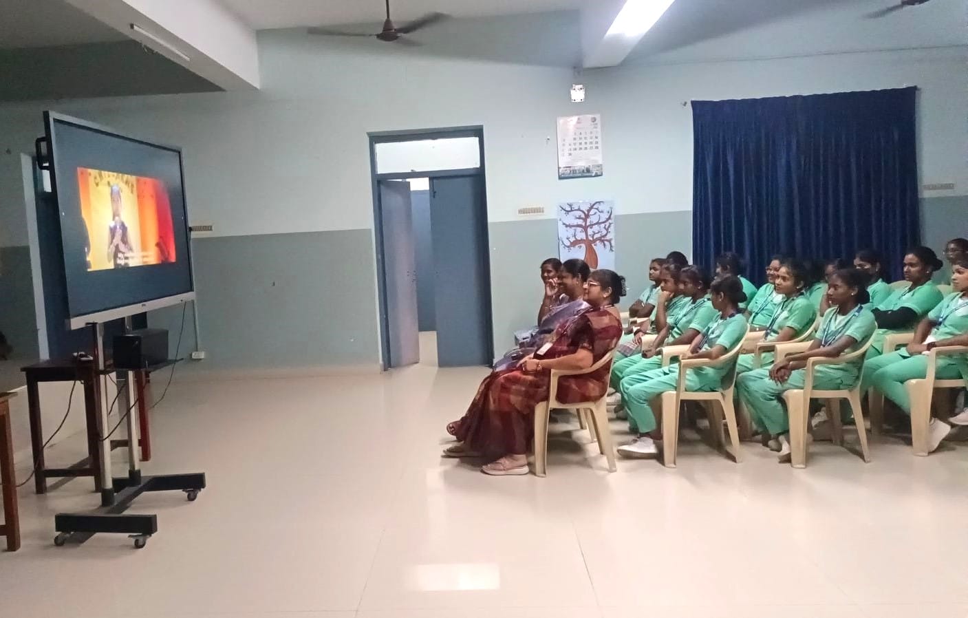 As part of an initiative launched by the Directorate of Medical Education (DME), Meenakshi College of Nursing, MAHER, organized a special screening of the thought-provoking film ‘Vannathupoochi’ on 13th June 2025. The event witnessed the participation of 143 students and 08 faculty members, and was coordinated by the Student Nurses Association (SNA).