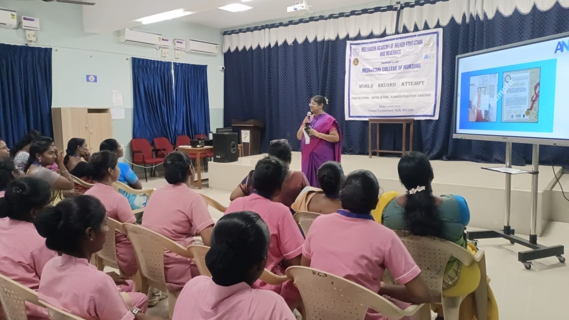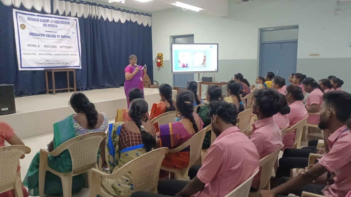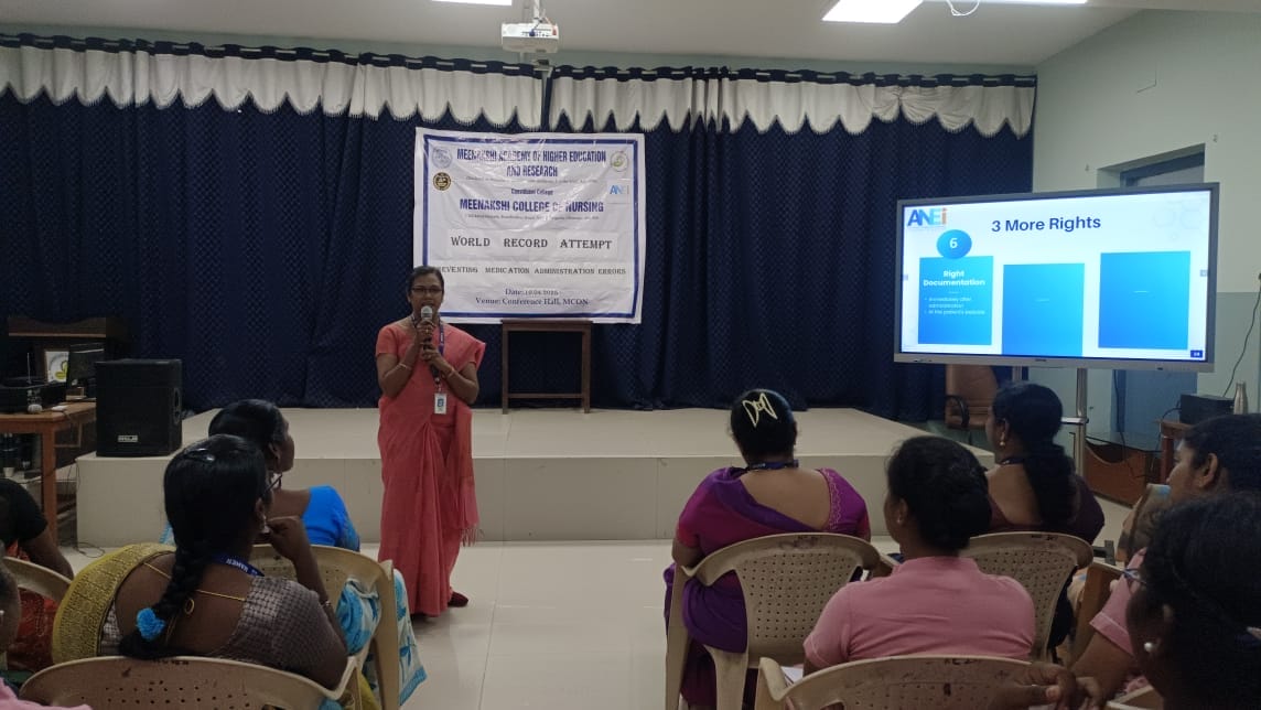 Meenakshi College of Nursing (MCON) has been officially recognized by Einstein World Records, UAE, for its participation in a synchronized training session on “Prevention of Medication Administration Errors”, conducted in collaboration with the Association of Nurse Executives of India (ANEI).