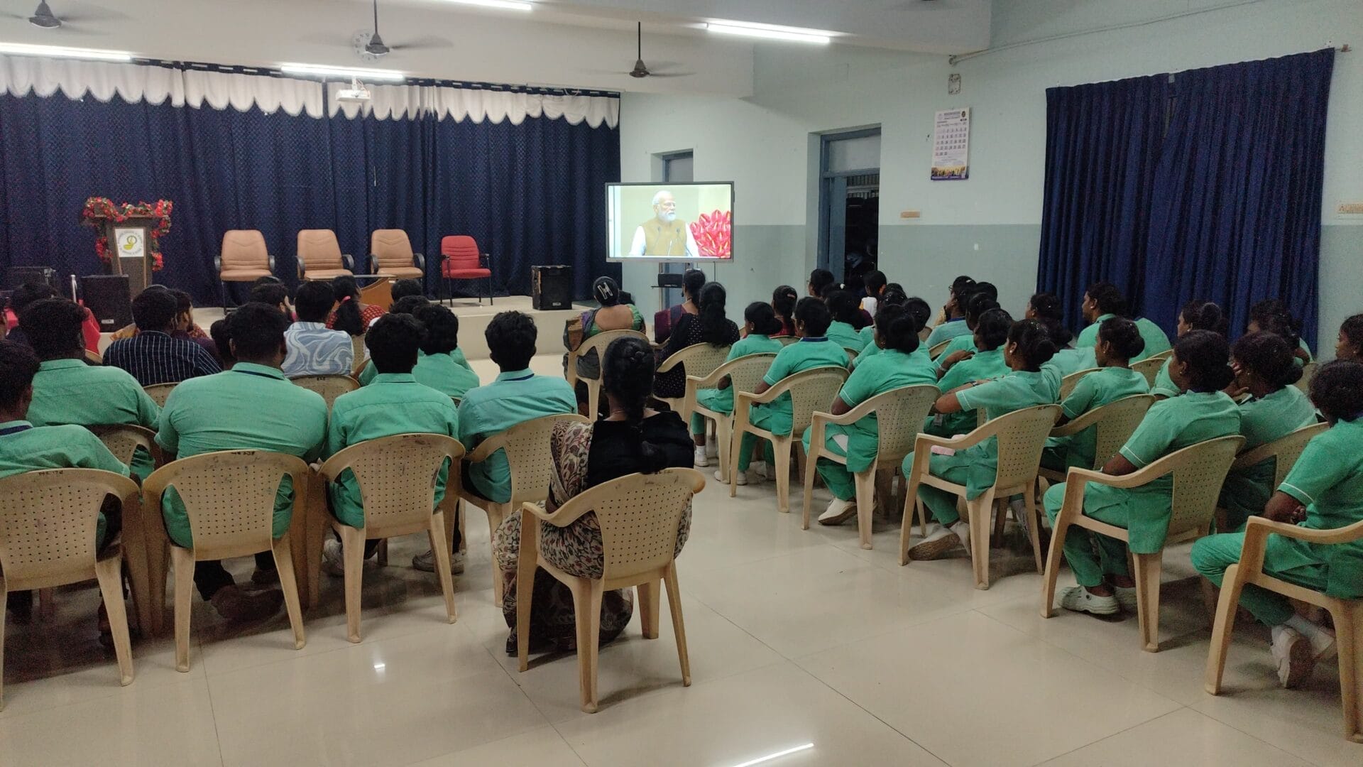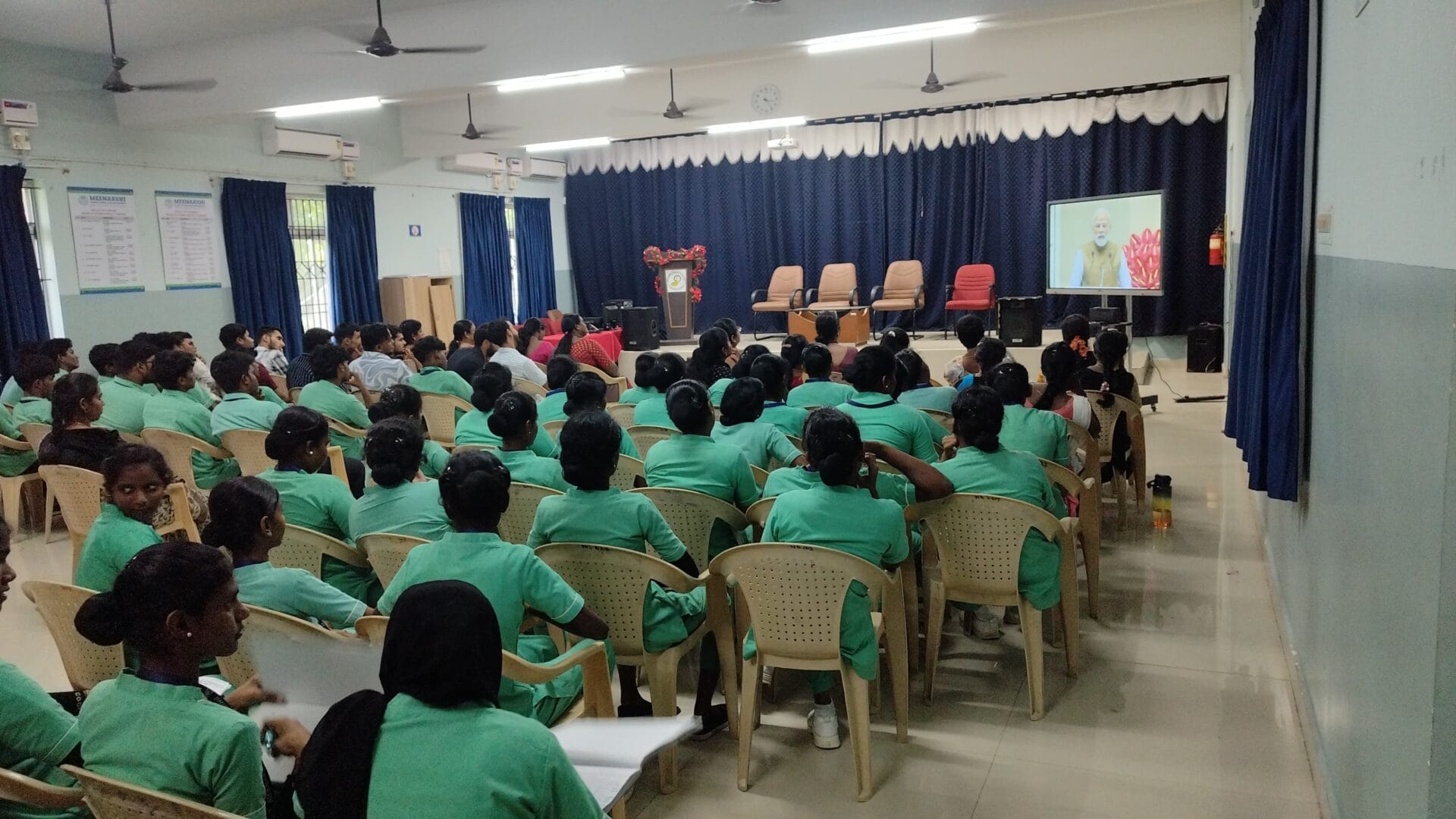 As per the UGC notification, a live webcast of the Special Session with the Hon’ble Prime Minister of India during the International Conference on Gyan Bharatam on the theme “Reclaiming India’s Knowledge Legacy through Manuscript Heritage” was broadcast for the students of Meenakshi College of Nursing in the Conference Hall on 12th September 2025.