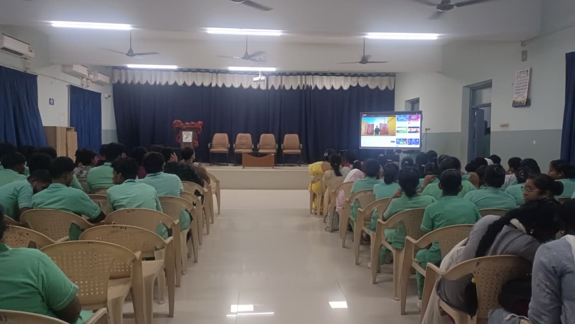 On 25th September 2025, the Tamil Nadu State Government showcased its major educational initiatives through a special live programme titled “Kalviyil Sirantha Tamil Nadu (Tamil Nadu Excelling in Education)”, held at the Nehru Indoor Stadium, Chennai from 4:00 p.m. to 8:30 p.m. The programme was telecast live at the Conference Hall of Meenakshi College of Nursing (MCON) under the supervision of Mr. Loganathan, Tahsildar, Mrs. Dolly, Revenue Inspector and Camp Incharge, Kundrathur Division, and Dr. Fabiola M. Dhanaraj, Principal, MCON.