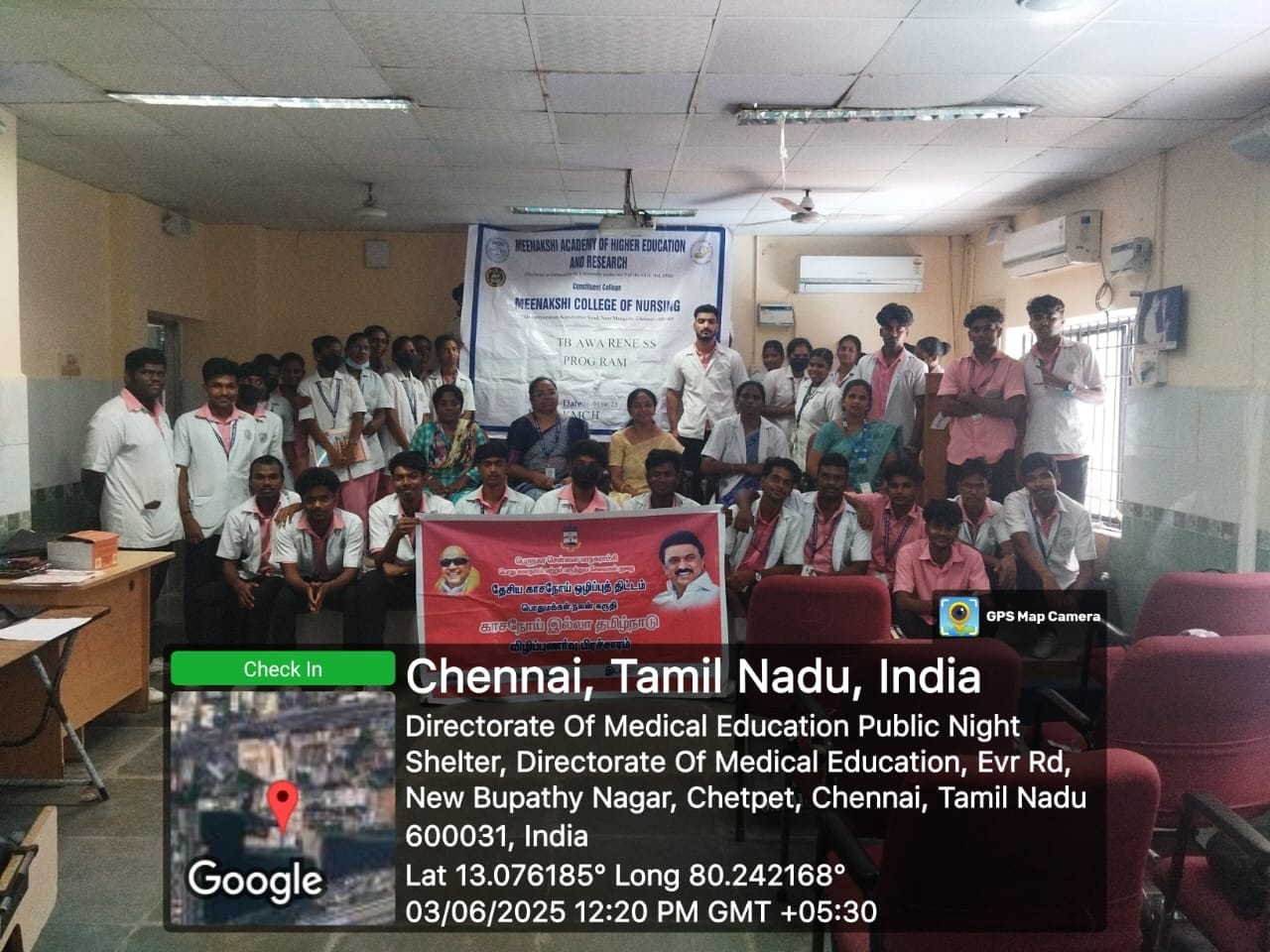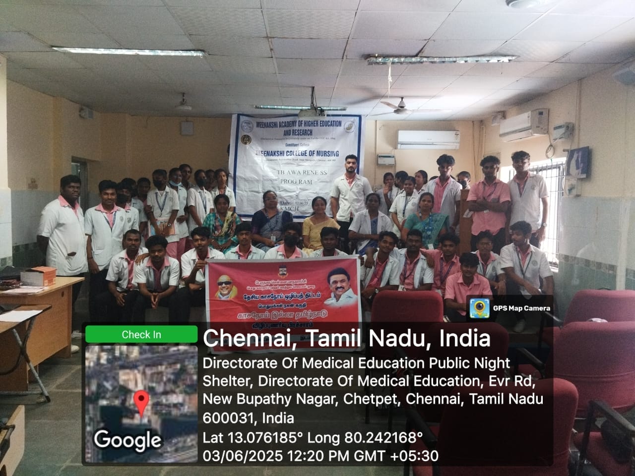 Meenakshi College of Nursing successfully conducted an awareness program on the National Tuberculosis Elimination Programme (NTEP) on 3rd June, 2025, at the KMCH Auditorium, in collaboration with Government Kilpauk Medical College and Hospital (KMCH), Chennai.