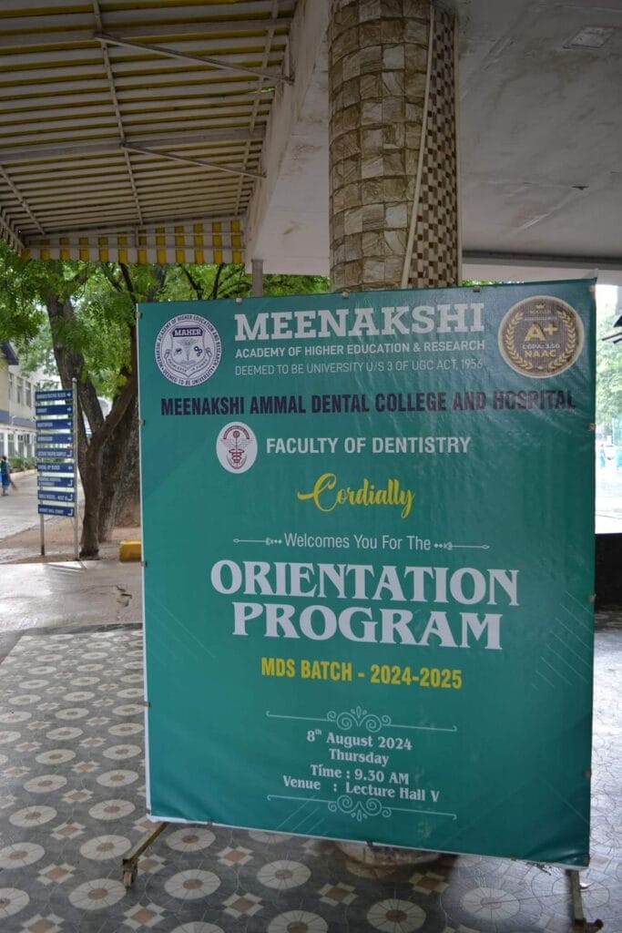 The MDS Induction Program for the batch 2024-2025 was successfully held on August 8th, 2024, at Meenakshi Ammal Dental College and Hospital. Principal Dr. N. Velmurugan warmly welcomed the new postgraduate students and their parents to the institution.