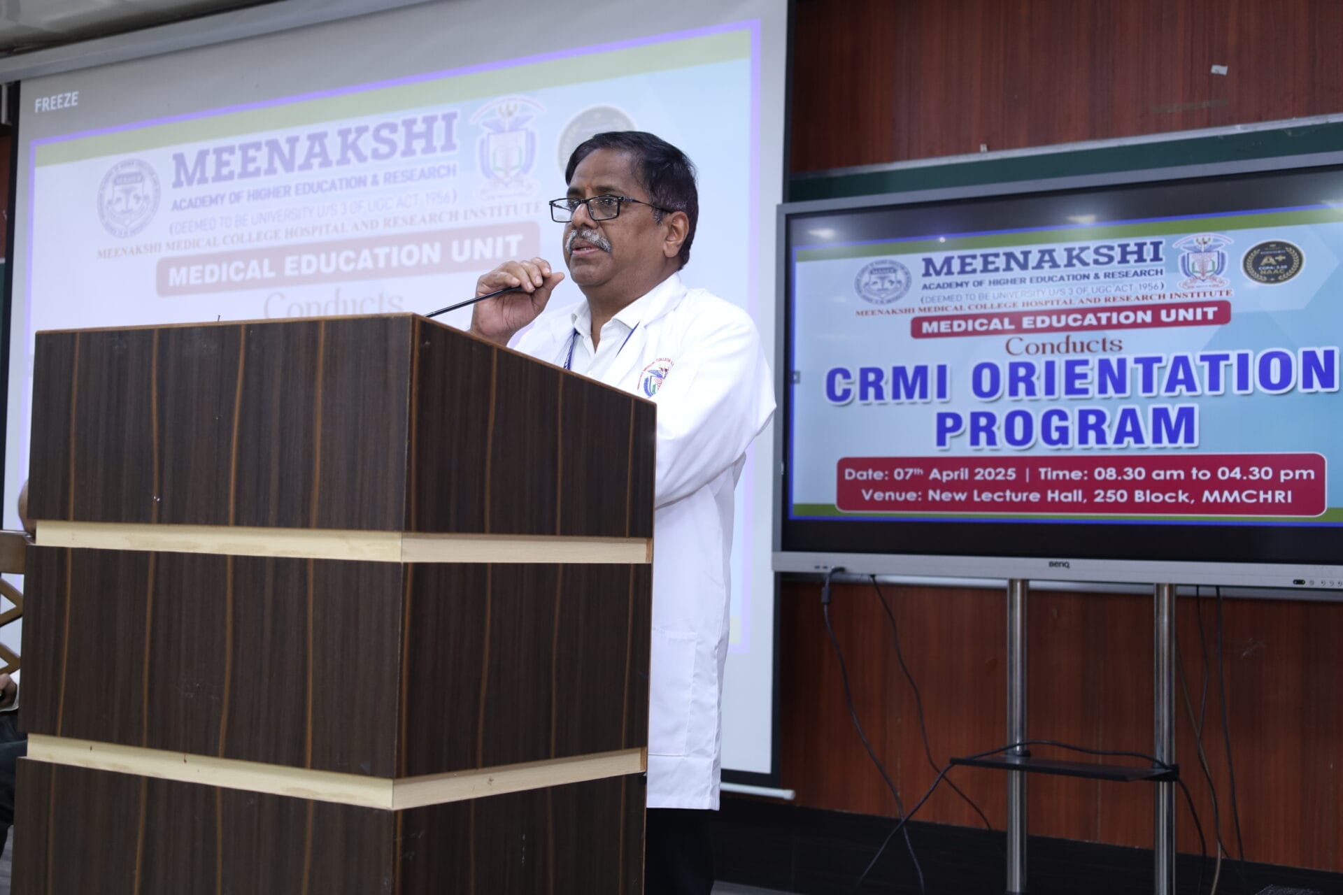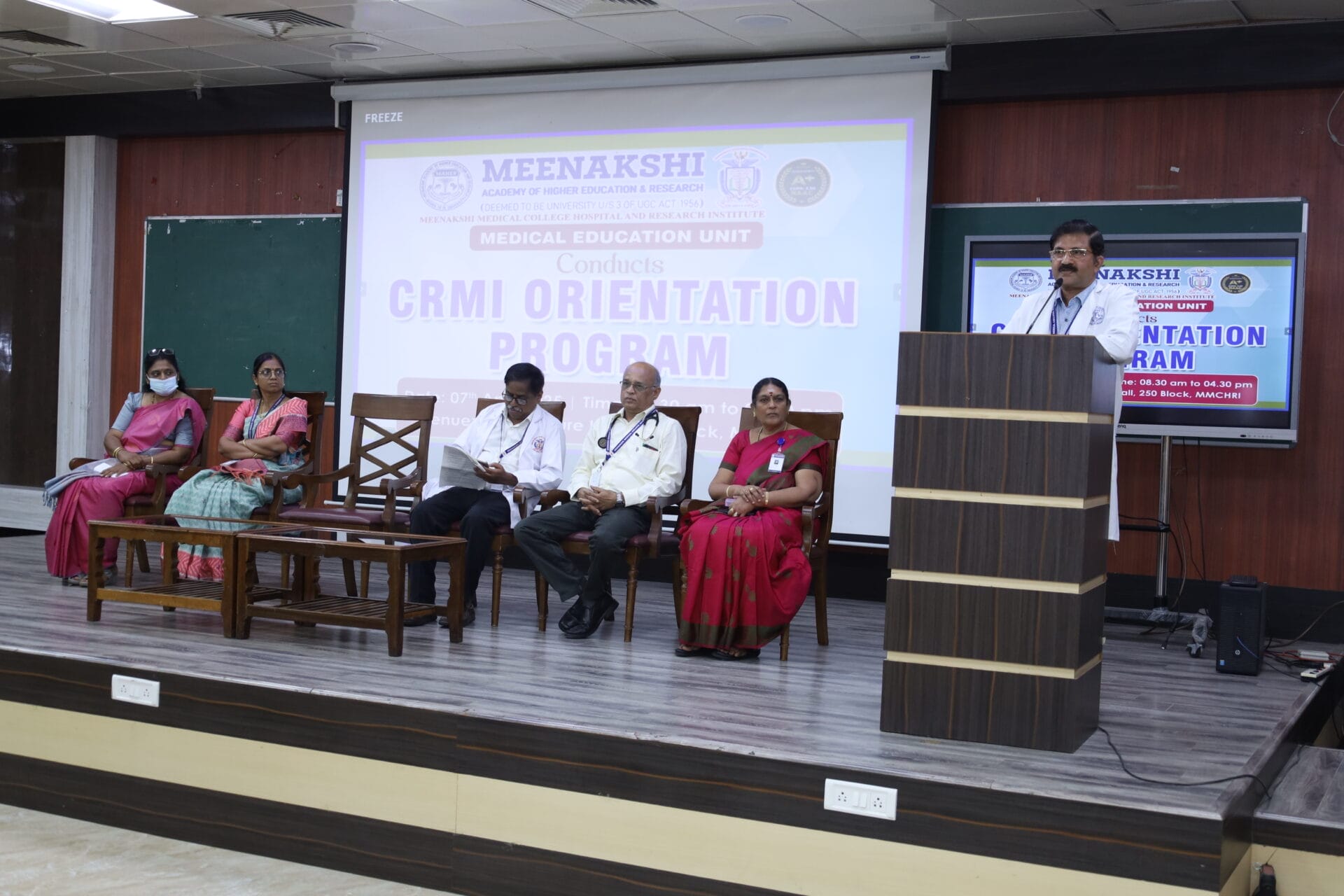 On April 7th, 2025, the Medical Education Unit of Meenakshi Medical College Hospital and Research Institute (MMCHRI) successfully conducted the Compulsory Rotating Medical Internship (CRMI) Orientation Program for the new batch of interns. This program marks the beginning of a crucial phase in their medical education, preparing students for hands-on clinical training and experience across various specialties.