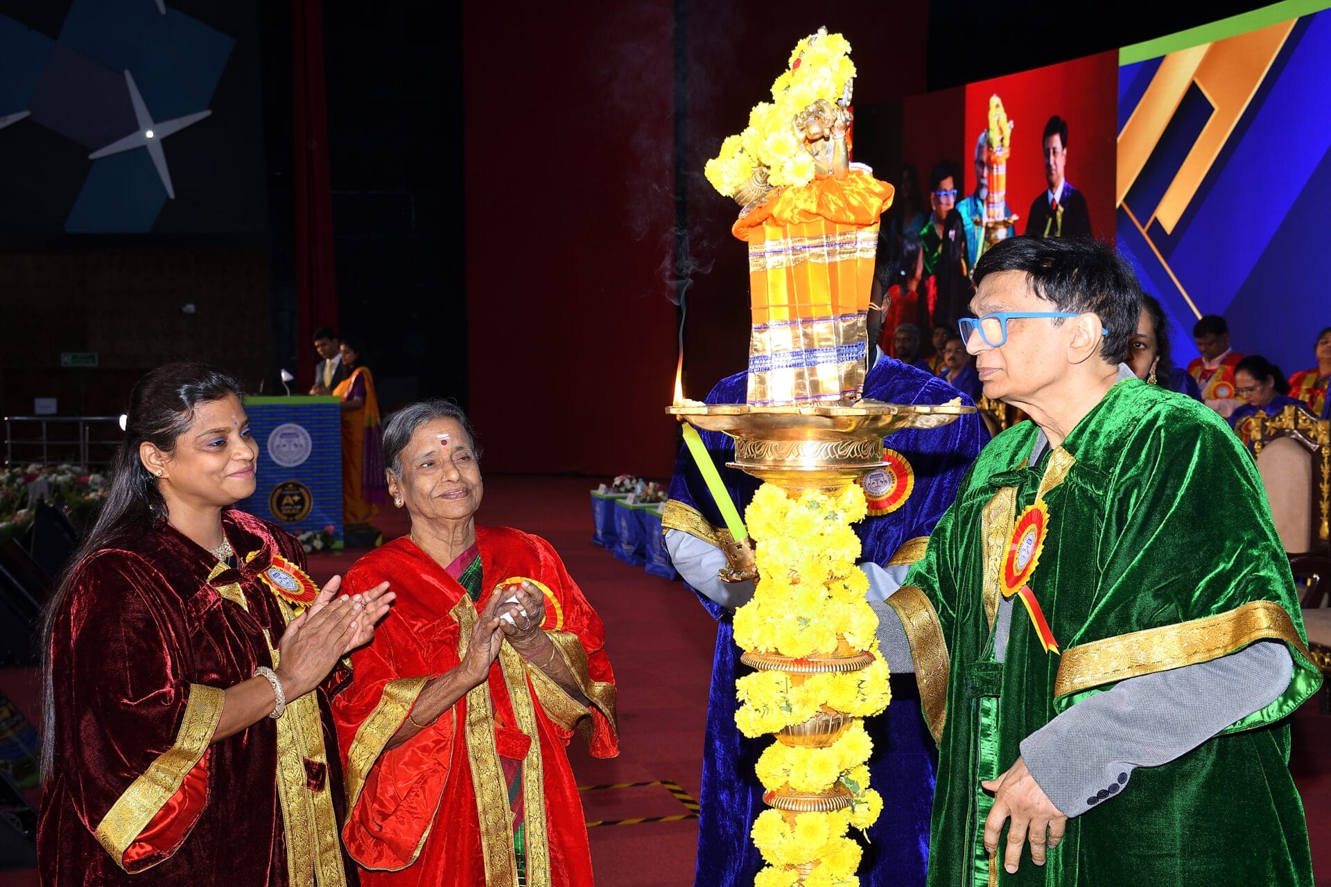 The Convocation Ceremony was presided over by the Hon’ble Chancellor, Mrs. Jayanthi Radhakrishnan, and held in the august presence of eminent dignitaries including Chief Patron Mrs. Gomathi Radhakrishnan, Pro-Chancellor Mr. Akash Prabhakar, Vice-Chancellor Prof. Dr. C. Sridhar, Pro Vice-Chancellor Prof. Dr. C. Krithika, and Registrar Prof. Dr. Sureka Varalakshmi, along with members of the Governing Body, academic leaders, faculty members, and distinguished guests.