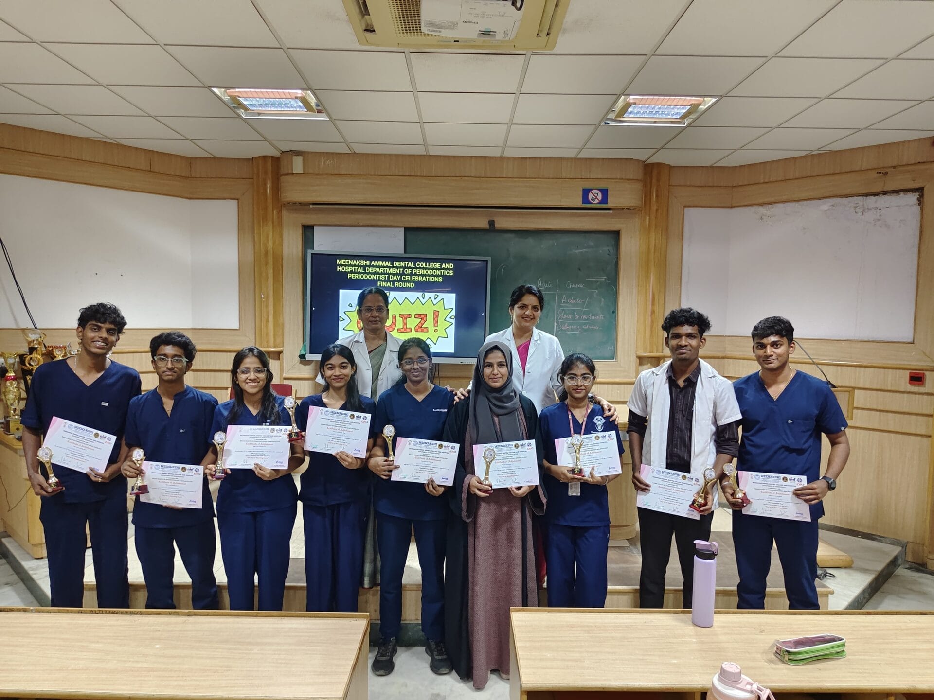 A quiz competition was organized to encourage academic engagement and knowledge enhancement among students, fostering enthusiasm for periodontics as a specialty. This was followed by an insightful lecture delivered by Dr. Jaideep Mahendra on oral hygiene and dentin hypersensitivity, which was attended by 87 third-year undergraduate students. The session provided valuable clinical insights and highlighted evidence-based approaches to managing common periodontal concerns.