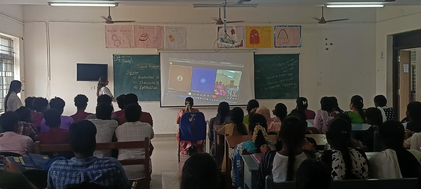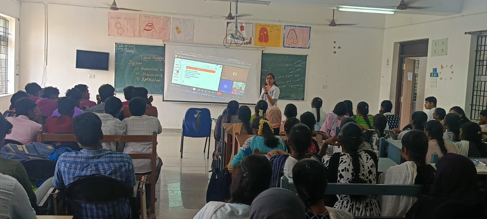 The resource person, Ms. Bhavani Priya S., Assistant Professor, Takshashila University, delivered an engaging presentation highlighting the rising prevalence of myopia, its causative factors, and preventive measures. She stressed the need for early detection, regular eye check-ups, and healthy lifestyle practices, including responsible screen time, to maintain good visual health.