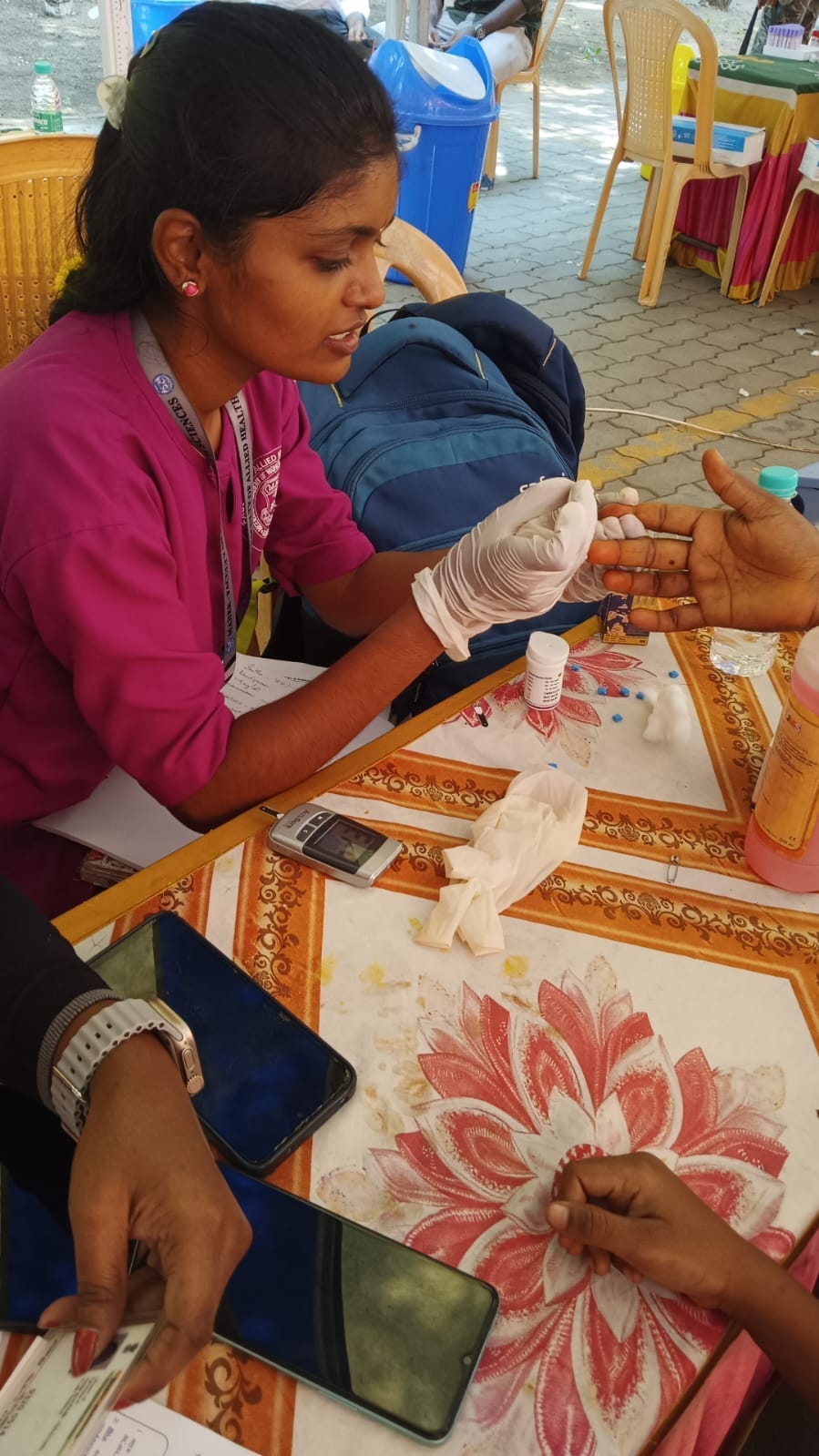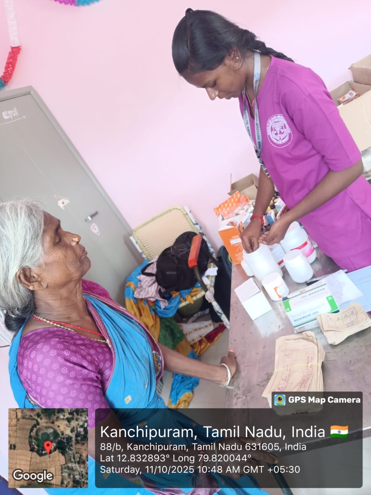 Second-year students of Meenakshi College of Allied Health Sciences actively participated in the medical camps organized at the Nalam Kaakum Stalin Camp held at Pachaiyappa’s Men’s College, Kanchipuram, and the Yamaha Camp conducted at Nayakkankuppam Village, Kanchipuram, on 11th October 2025.