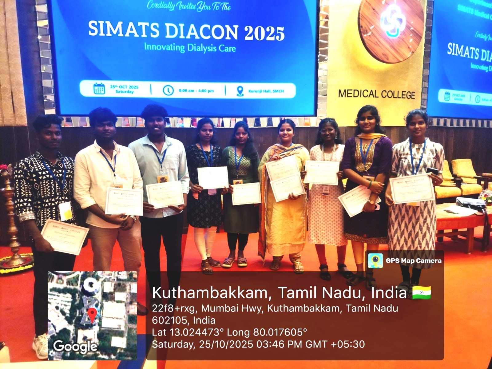 The II and III year students of Renal Dialysis Technology, Meenakshi College of Allied Health Sciences, actively participated in the National Conference on Dialysis – SIMATS DIACON 2025, held on 25th October 2025. The event was organized by the Department of Nephrology, Saveetha Medical College and Hospital, Chennai.