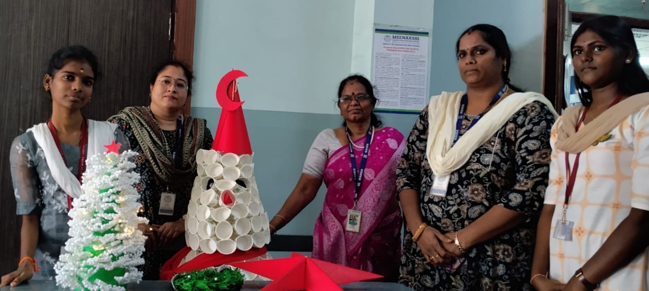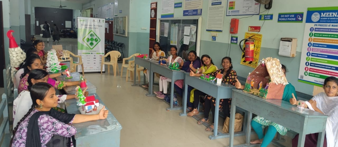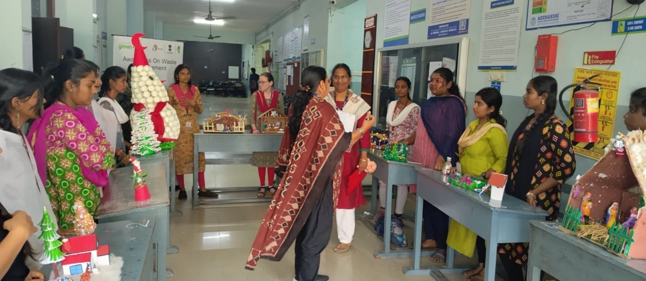 Meenakshi College of Arts and Science, in association with ISO MAHER, organized a creative and eco-conscious event titled “Art out of Waste” on 20th December 2025. The event aimed to promote environmental awareness while encouraging students to channel their creativity through sustainable practices. Centered on the theme “Christmas Decorative Items,” the competition provided a vibrant platform for students to transform waste materials into innovative and meaningful decorative products.