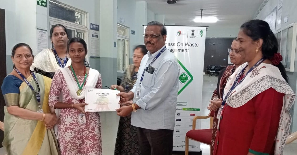 Around 15 students actively participated in the competition with great enthusiasm. The best creations were recognized with medals for the first three positions, while all other participants were encouraged through participation certificates. The event was efficiently coordinated by Mrs. S. Malarvizhi and Mrs. R. Arivukkodi, ISO Coordinator – MCAS, and was conducted in the presence of Prof. Dr. P. Sagayaraj, Dean, MCAS, along with the Principals of Shift I and Shift II, Dr. V. Shanthi and Dr. N. Prabhavathy Devi.