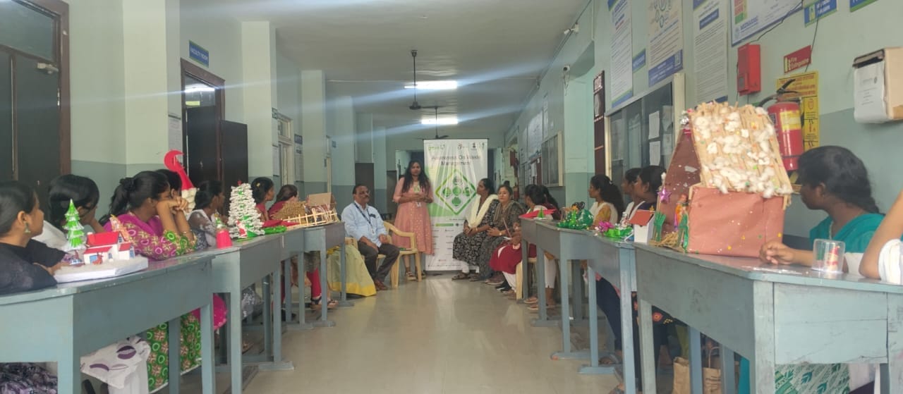 Students showcased their talents by crafting attractive Christmas-themed items using recyclable and reusable materials, reflecting both artistic skill and environmental responsibility. The programme was further enriched by the presence of Mrs. Jennifer, an NGO volunteer from “CLEAN to GREEN,” who addressed the participants and appreciated their efforts in promoting sustainability through creativity.