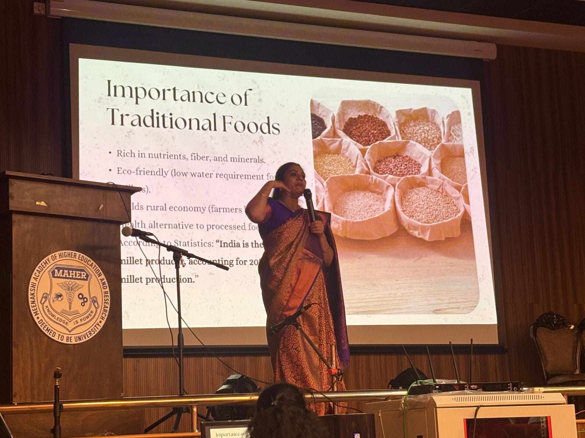 The session featured Mrs. Menaka, Founder of Mannvasani Traditional Foods, Chennai, as the resource person. She shared her valuable insights on the importance of reviving traditional foods, the vast entrepreneurial potential within this domain, and how innovation can play a key role in promoting healthy and sustainable food practices in modern society.