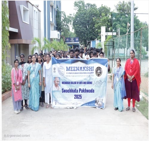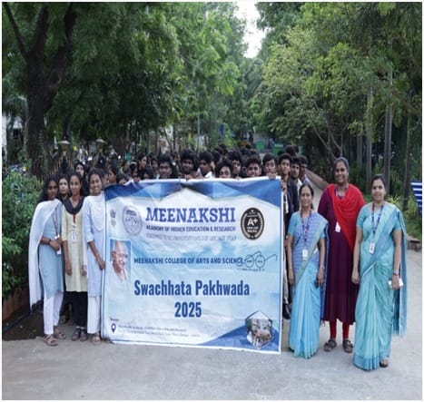 Meenakshi College of Arts and Science, a constituent of Meenakshi Academy of Higher Education and Research (MAHER), observed Swachhata Pakhwada 2025 on 15th September 2025 with a series of activities designed to foster cleanliness, hygiene, and environmental responsibility among students.