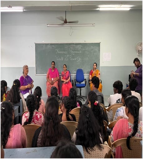 The resource person, Prof. Dr. T. Mythili, Department of Psychology, delivered an enlightening and informative session on the physical and psychological consequences of tobacco use. She explained in detail how tobacco consumption causes oral and dental diseases such as gum infections and tooth loss, and significantly increases the risk of various cancers including lung, oral, throat, esophageal, bladder, liver, stomach, pancreatic, colon, cervical cancers, and acute myeloid leukaemia. She also highlighted the impact of tobacco on the cardiovascular system, noting that it hardens and narrows blood vessels, often leading to strokes.