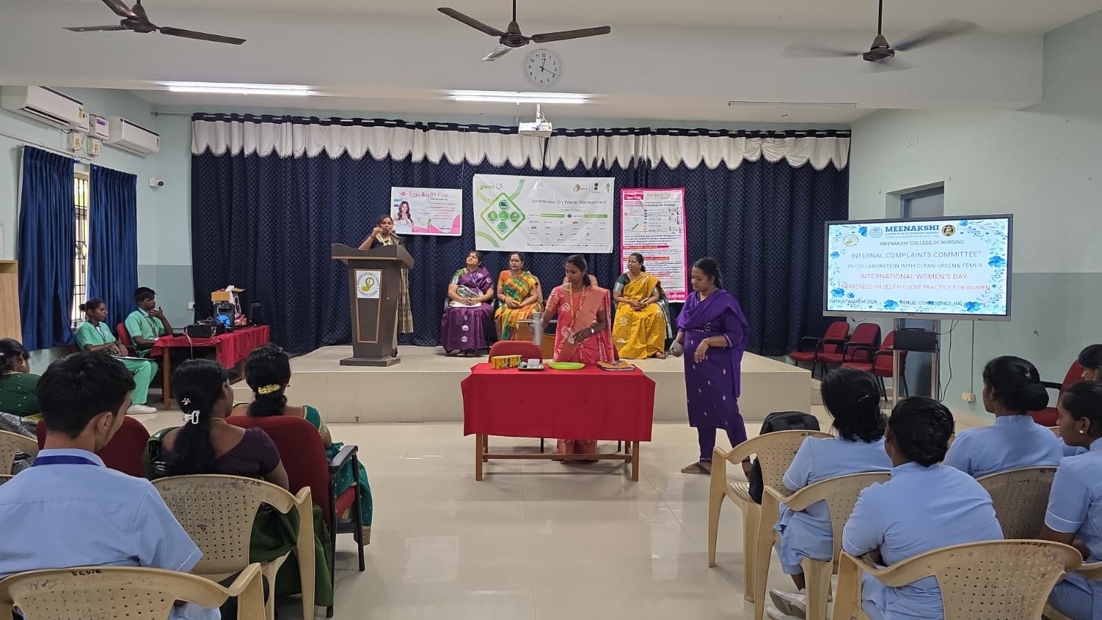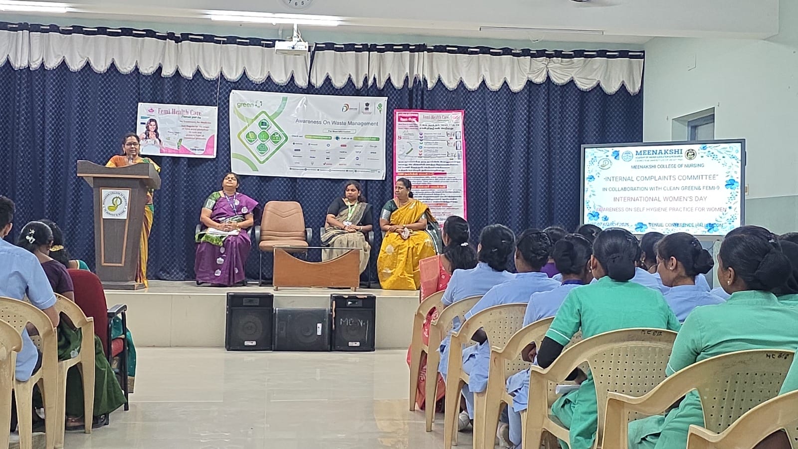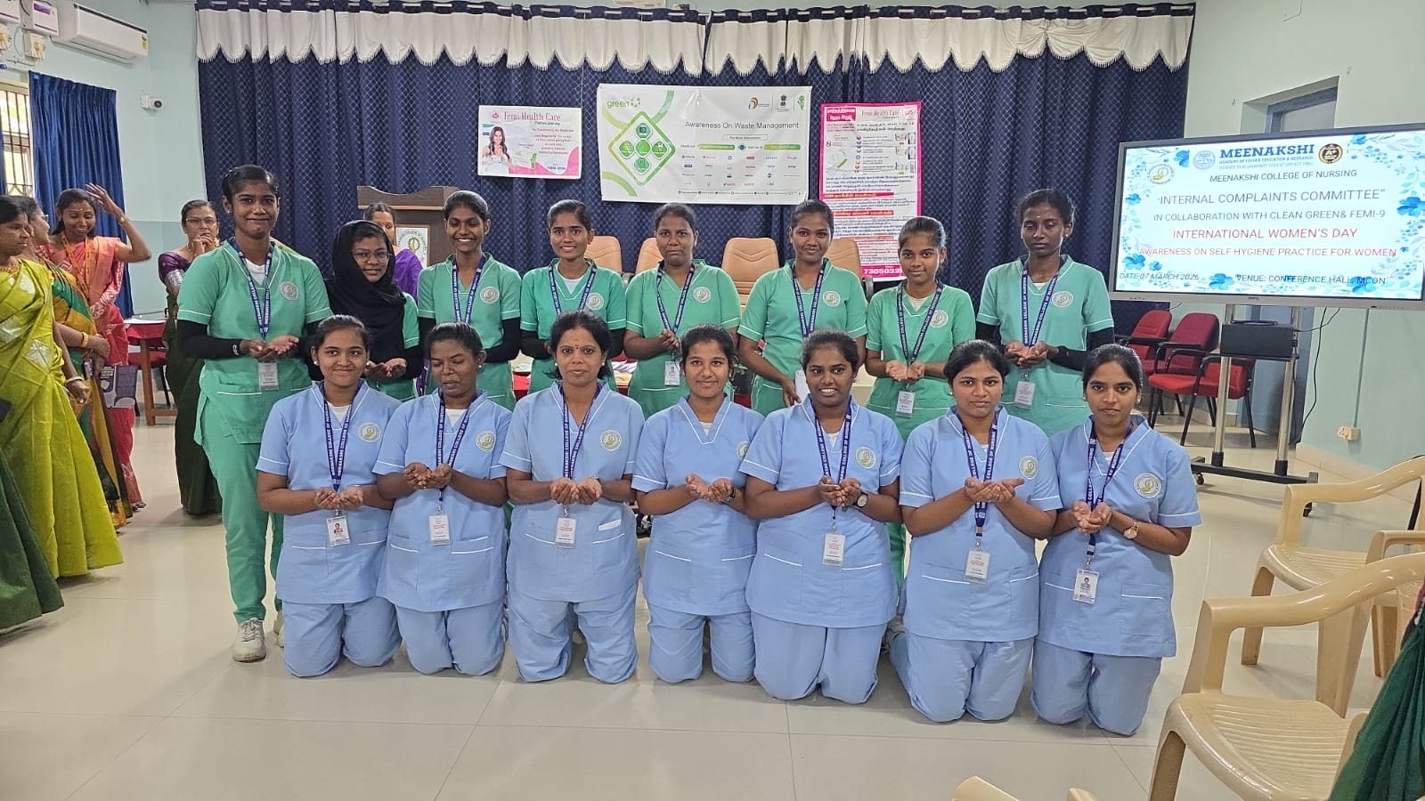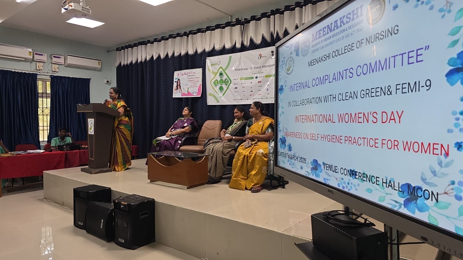 In celebration of International Women’s Day, the Internal Complaints Committee (ICC) of Meenakshi College of Nursing organized an Awareness Programme on Self-Hygienic Practices for Women on 7th March 2026, in collaboration with Clean Green and FEMI-9.
