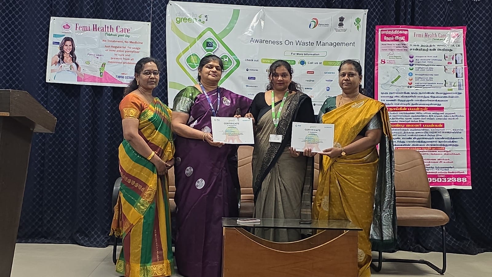 The resource person, Mrs. Sowmiya, created awareness on menstrual hygiene by explaining the uses and benefits of FEMI-9 products. This was followed by Mrs. Jenifer Caroline, who elaborated on the biodegradable nature of the products and conducted a demonstration on their usage, promoting sustainable and hygienic practices.