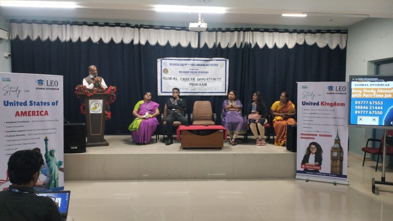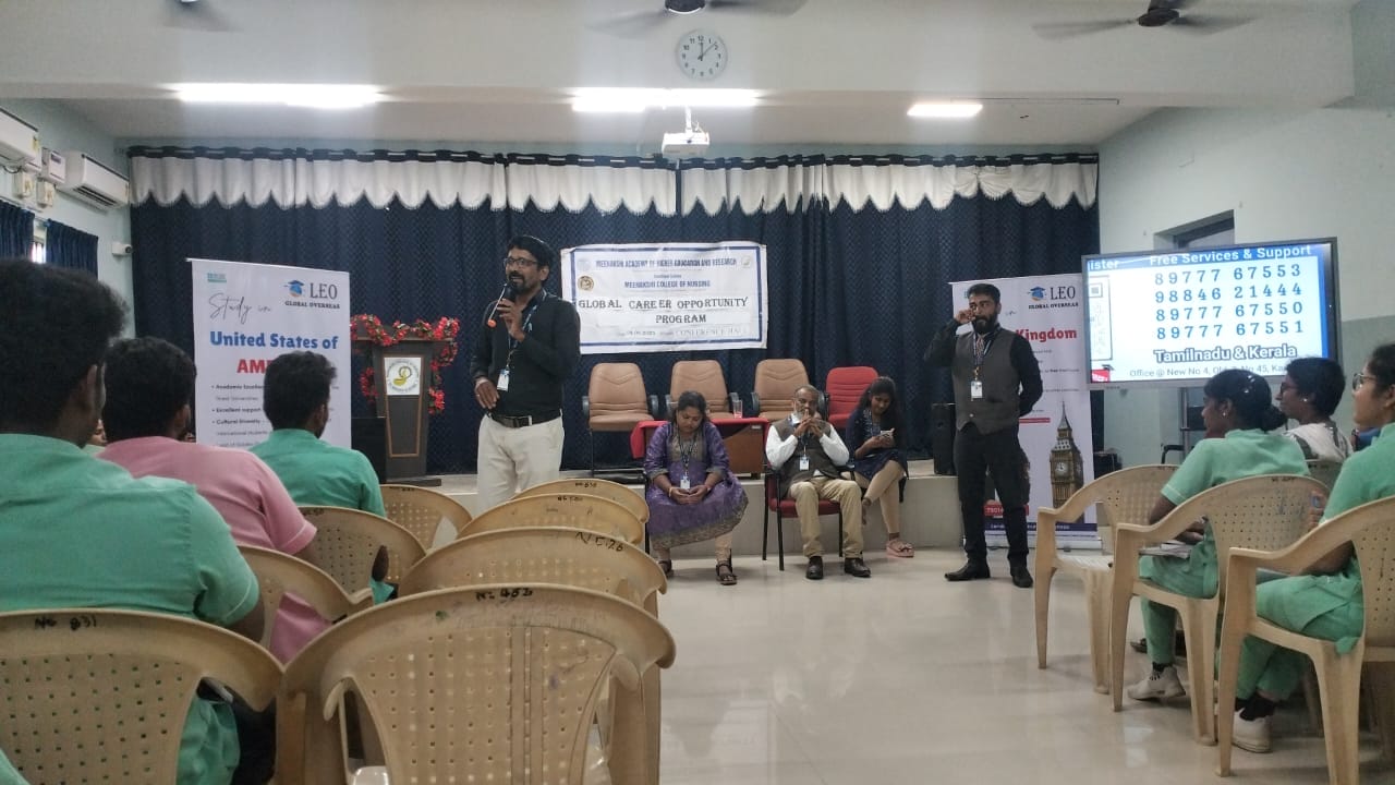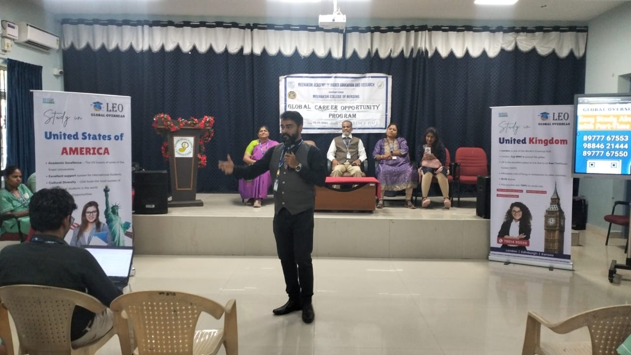 The TPCG Committee of Meenakshi College of Nursing (MCON) organized a career guidance programme on the theme “Global Career Opportunity” for the B.Sc. Nursing III and IV year students on 9th September 2025 between 10:00 a.m. and 12:00 p.m.