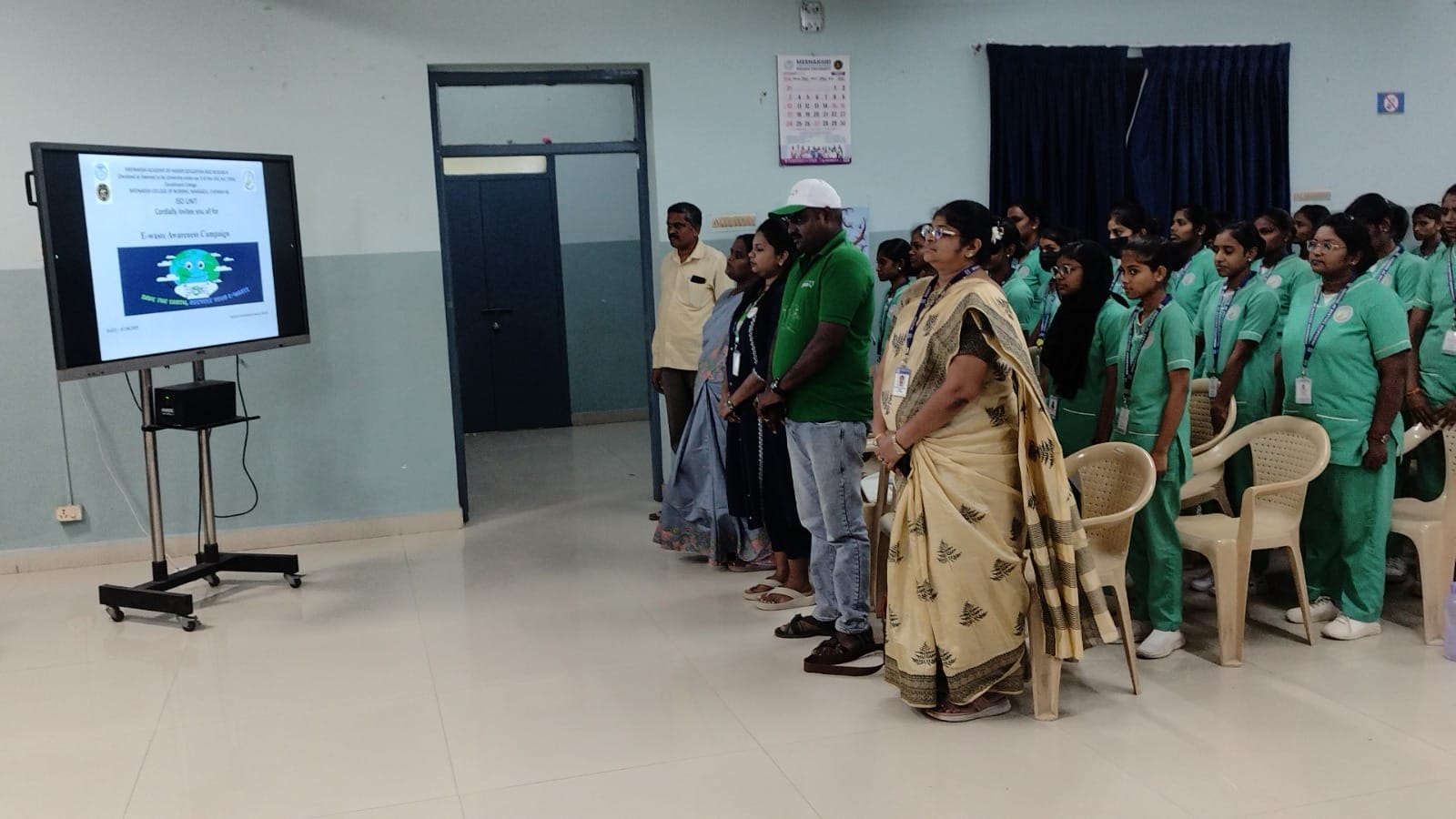 Meenakshi College of Nursing (MCON), MAHER, in collaboration with RLG by Reconomy (Clean to Green), conducted a Plastic-Free Environment and E-Awareness Programme on 7th August 2025 from 10:00 AM to 12:00 Noon. The initiative aimed to spread awareness about the harmful effects of single-use plastics while promoting eco-friendly practices and responsible digital behavior.