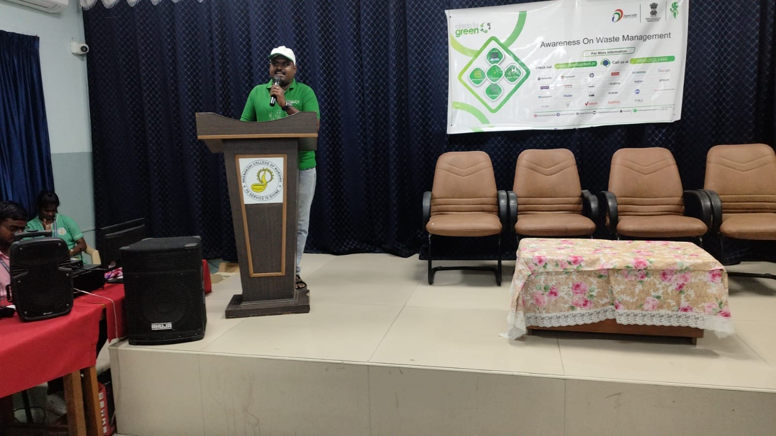 Mr. Manova Marcus, Senior Volunteer, RLG by Reconomy, delivered an engaging session on the urgent need to move towards a plastic-free lifestyle, highlighting the long-term environmental impact of single-use plastics. He emphasized the three R’s – Reduce, Reuse, and Recycle – encouraging participants to choose sustainable alternatives in daily life.