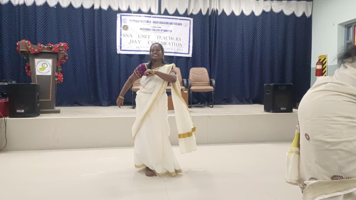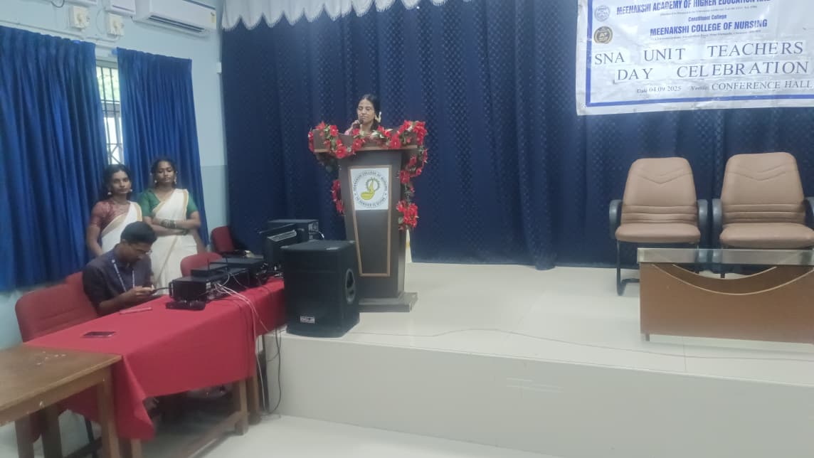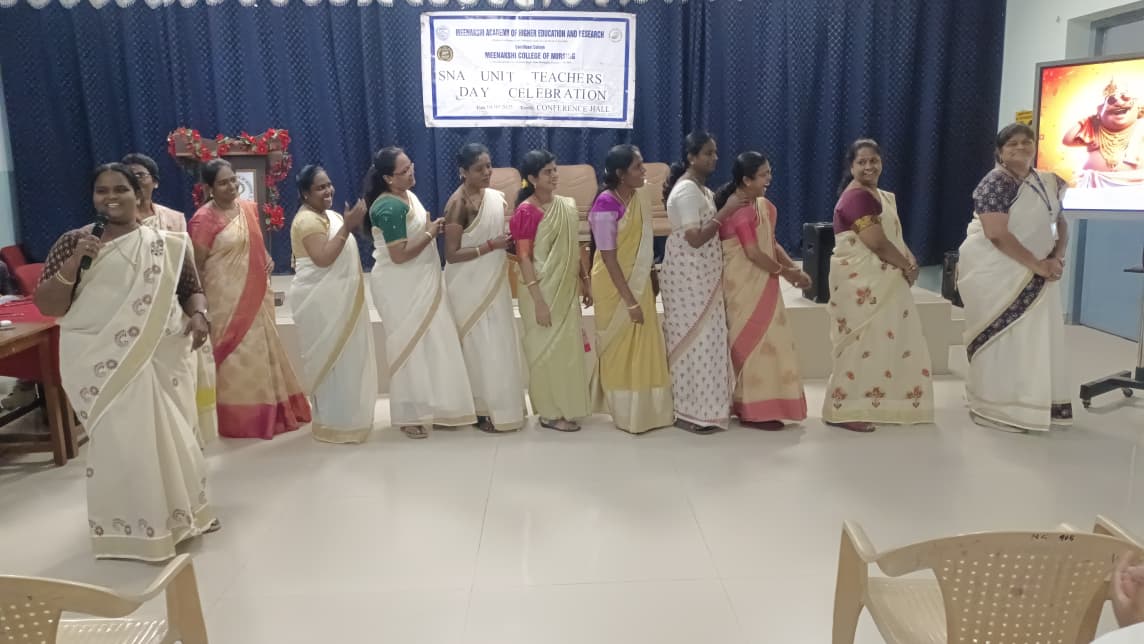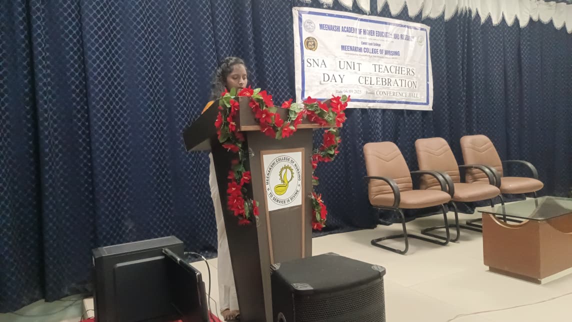 Meenakshi College of Nursing (MCON) celebrated Teacher’s Day on 4th September 2025 with great zeal, honoring the invaluable contributions of its teaching fraternity. The event offered students an opportunity to express their appreciation through music, speeches, and vibrant performances, reinforcing the bond between mentors and mentees. The celebration was coordinated by Dr. Thephilah Cathrine R, Associate Professor, MCON. A total of 141 students and 14 faculty members actively participated in the program.