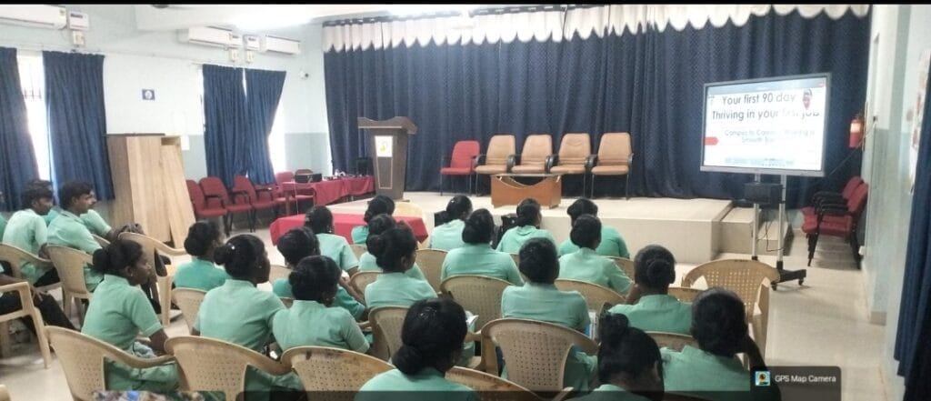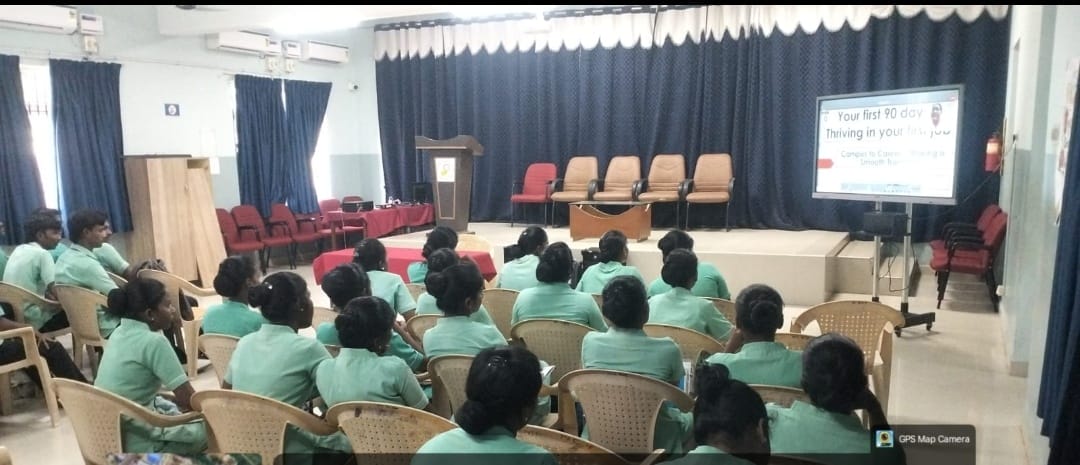 The webinar, titled “Your First 90 Days: Thriving in Your First Job,” focused on preparing student nurses for a smooth transition from academic life to professional practice. Faculty members Dr. Fabiola M. Dhanaraj, Dr. J. Anitha, and Ms. Regi Cindrella M also attended the session along with the students.