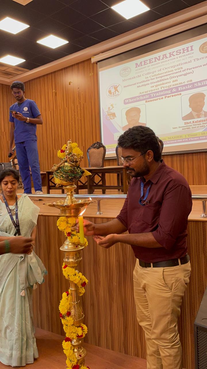 Meenakshi College of Occupational Therapy, MAHER, in collaboration with the National Institute for Empowerment of Persons with Multiple Disabilities (Divyangjan), Ministry of Social Justice & Empowerment, Government of India, organized an Awareness Program on Wheelchair Training and Basic Skills on 30th March 2026 from 10:30 A.M. to 1:30 P.M. at the Auditorium, MAHER.