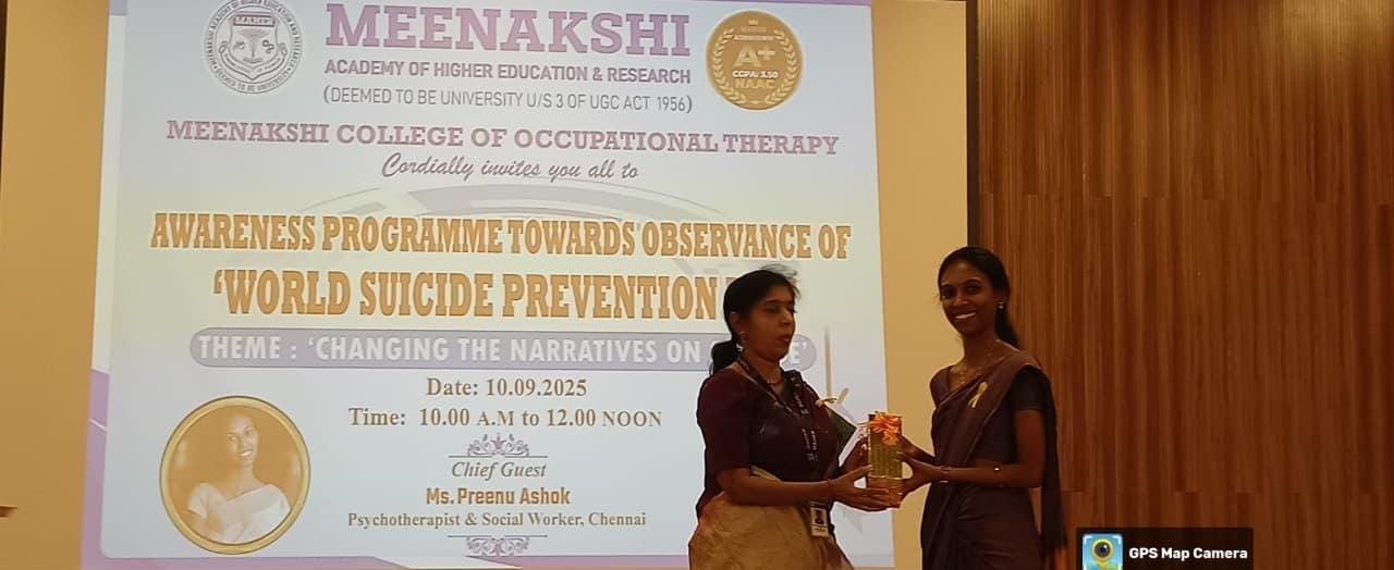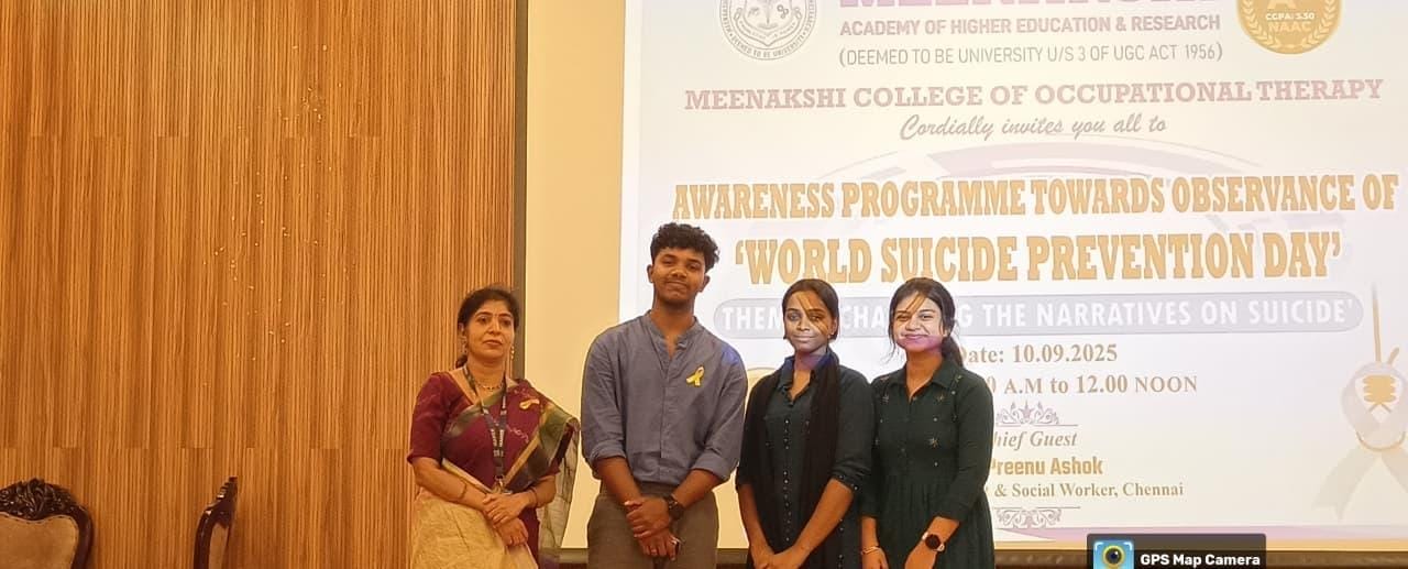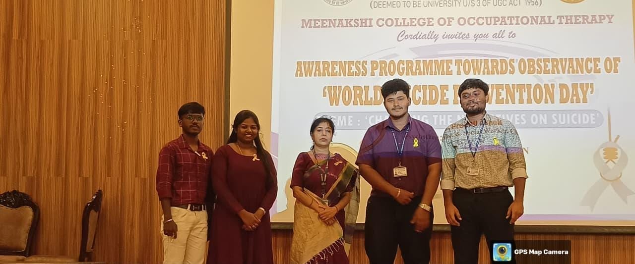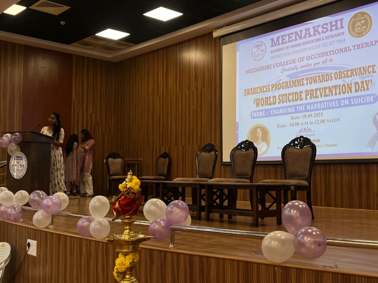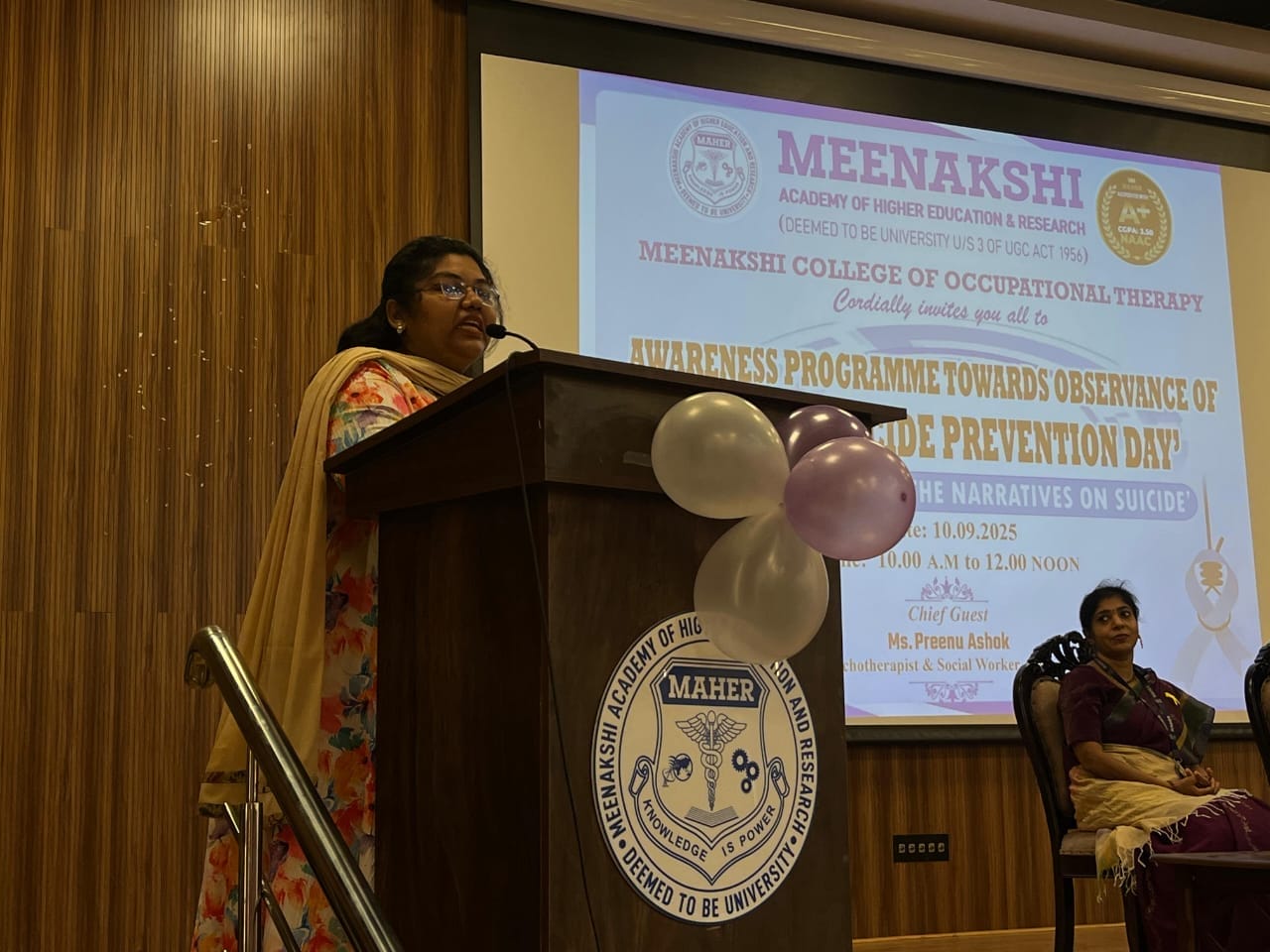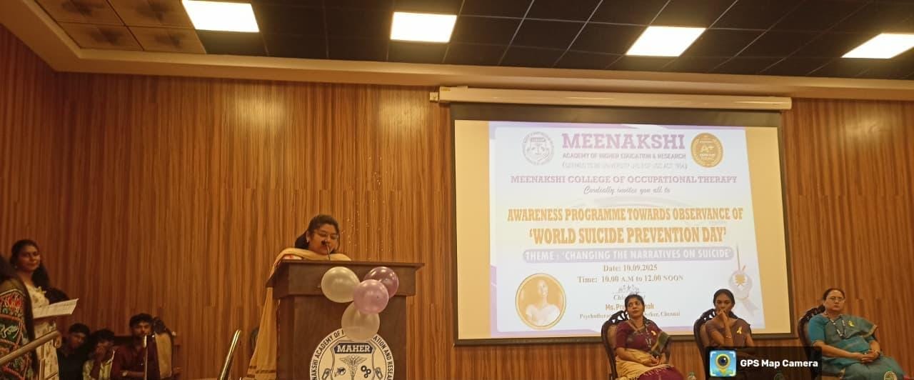 Meenakshi College of Occupational Therapy, MAHER, organized an Awareness Programme on the occasion of World Suicide Prevention Day on 10th September 2025 at the MAHER Auditorium.