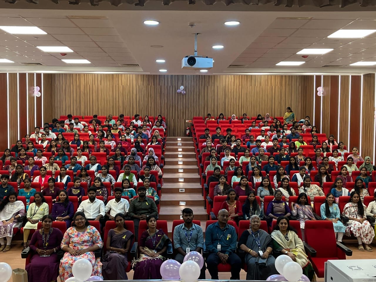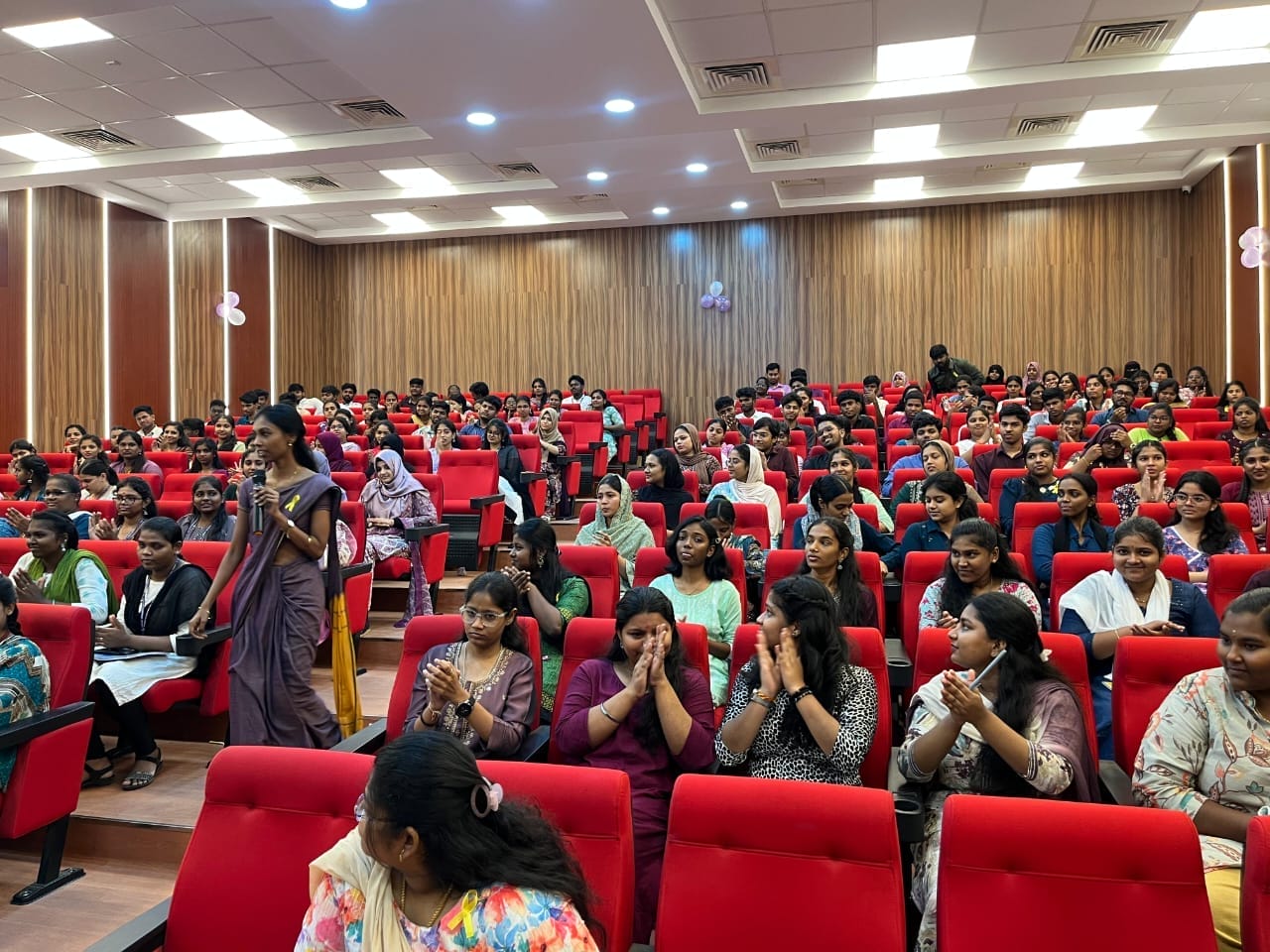 Prof. Deepa Sundareswaran extended a warm welcome to the dignitaries, faculty, students, and guests. Dr. Lily Christopher, Dean of Student Affairs, addressed the gathering with an inspiring message that set a positive tone for the programme. Ms. Leala Joyce Rani R., Assistant Professor, introduced the Chief Guest, highlighting her impactful journey in mental health and her significant contributions to the field.
