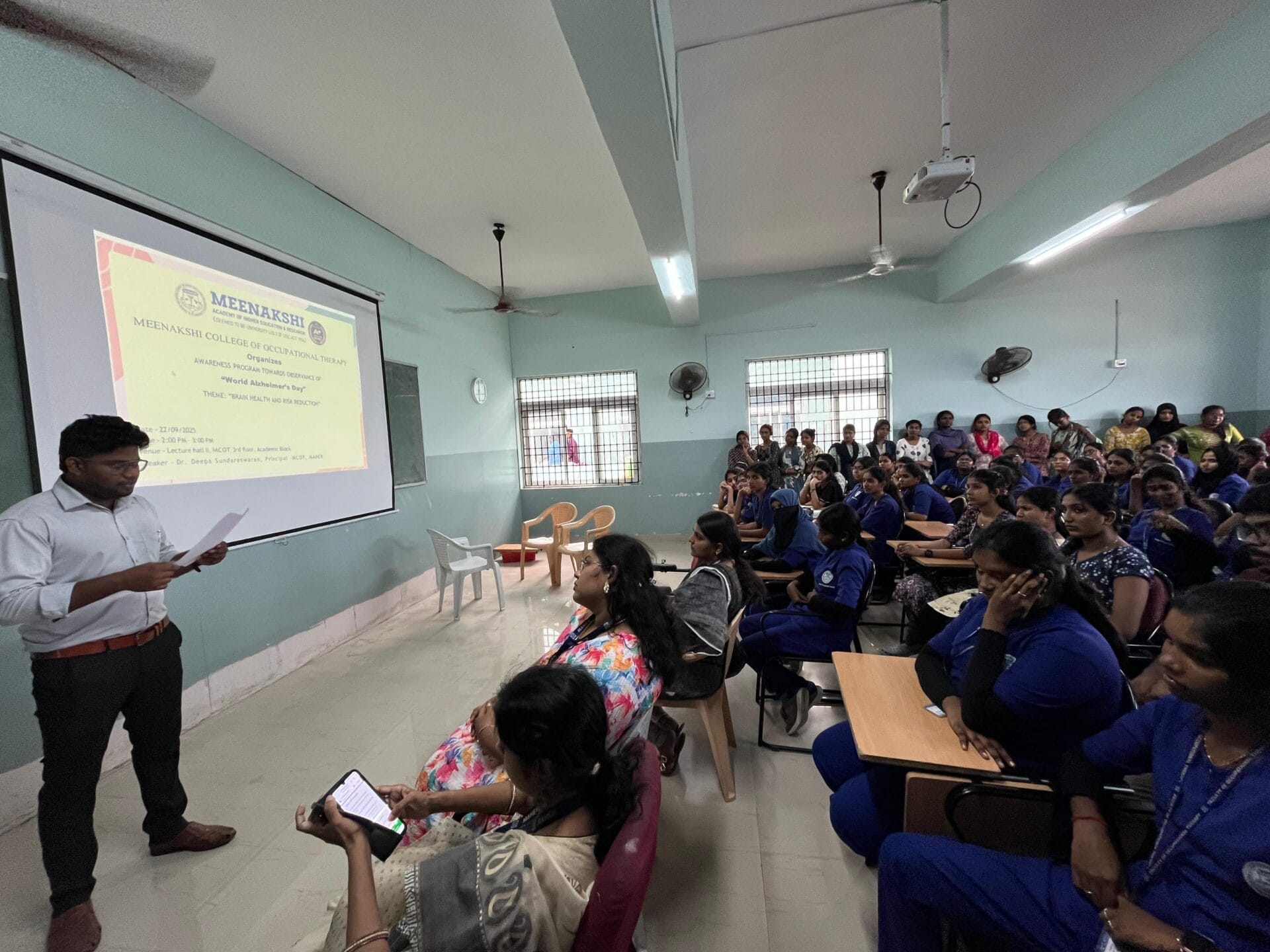 In observance of World Alzheimer’s Day 2025, Meenakshi College of Occupational Therapy, MAHER, organized a special awareness program on 22nd September 2025 under the theme “Reducing Stigma and Promoting Compassionate Care within Communities.” The event aimed to spread awareness about Alzheimer’s disease while highlighting the importance of empathy and support for patients and caregivers.