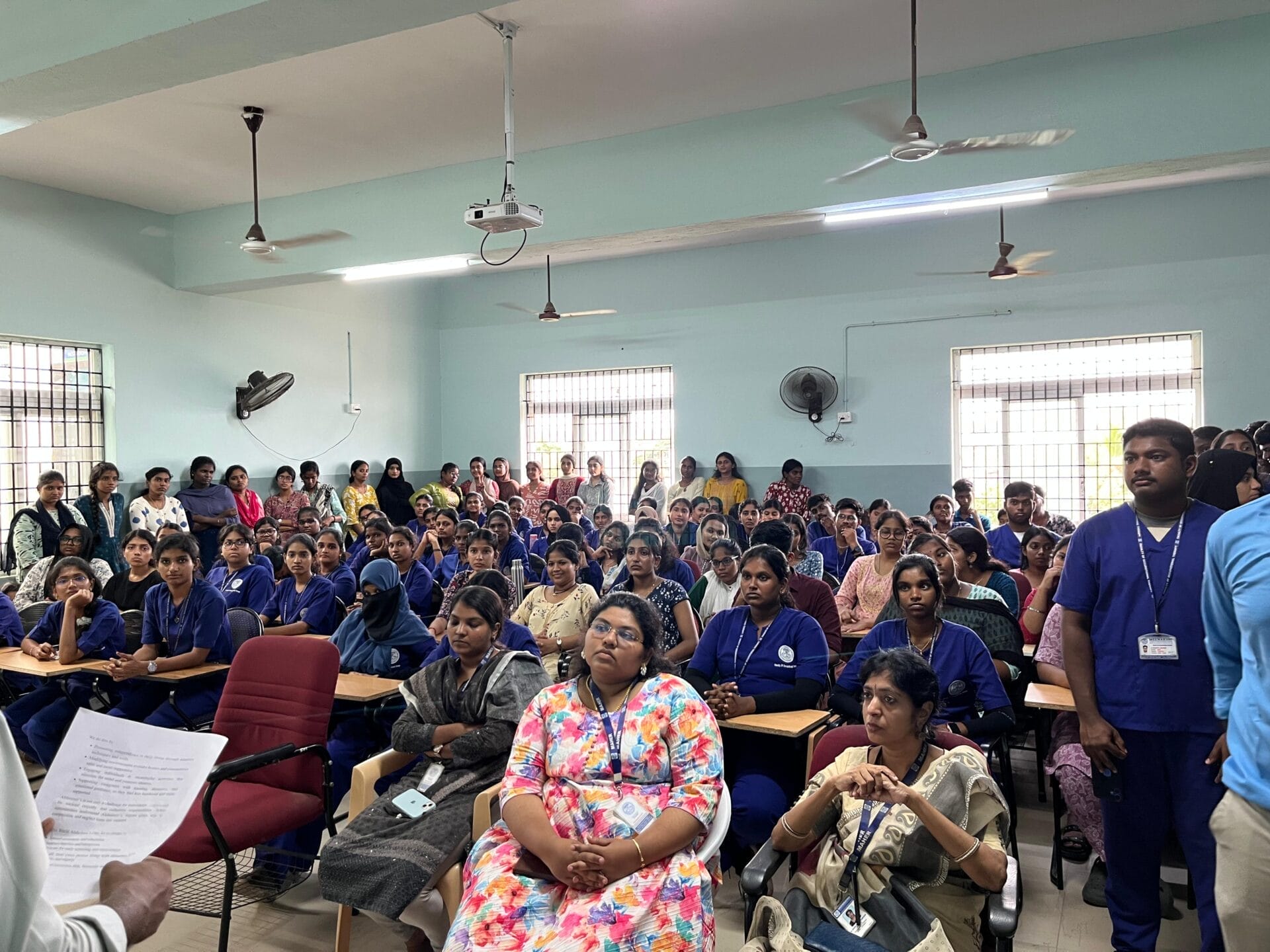A powerful skit performed by MOT students brought to life the challenges faced by individuals living with Alzheimer’s and their caregivers, leaving a strong impact on the audience. This was followed by an informative speech by Mr. Sarathi Dasan, PG I Year, who elaborated on the nature, impact, and management of Alzheimer’s disease, stressing the importance of awareness and early intervention.