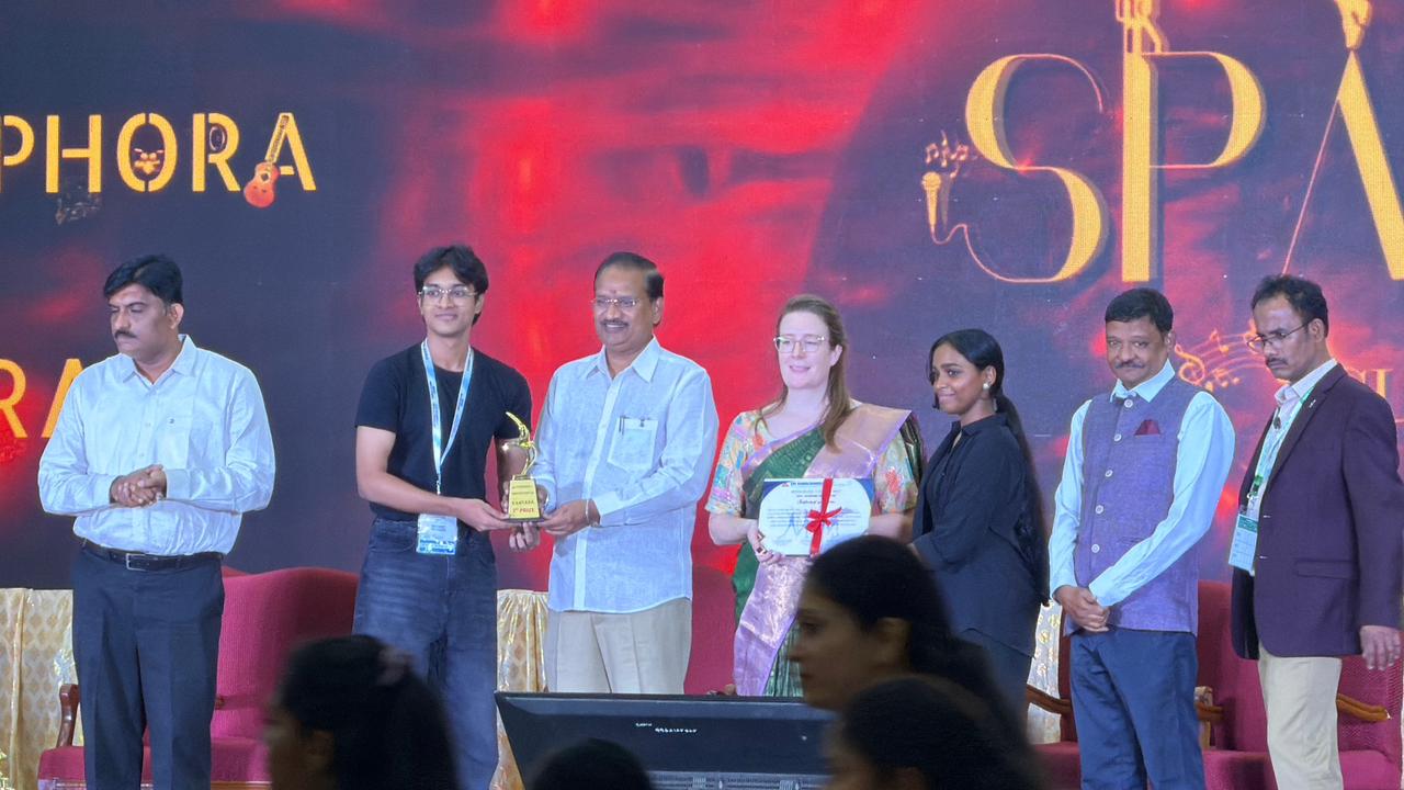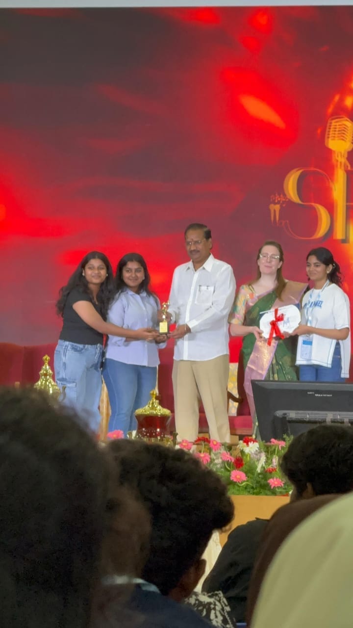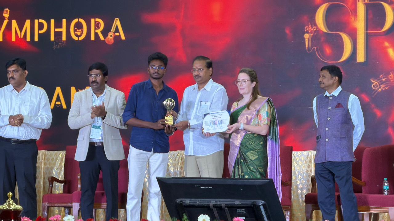 Notable achievements included the first prize in the Shark Tank (Ad-zap) competition won by Ms. Monisha, Ms. Beulah, and Ms. Yuvasri of BOT I Year. The students also won third prizes in events such as Swaram (Duet Song), Sympora (Group Song), Kanthara (Face Painting), and Ramp On (Ramp Walk), showcasing their versatility across cultural platforms. In the academic category, Mr. Rohan T. and Ms. Ishrath Rahana secured third prize in the scientific e-poster presentation, while Mr. Sarath V., MOT I Year, won third prize in the scientific paper presentation.