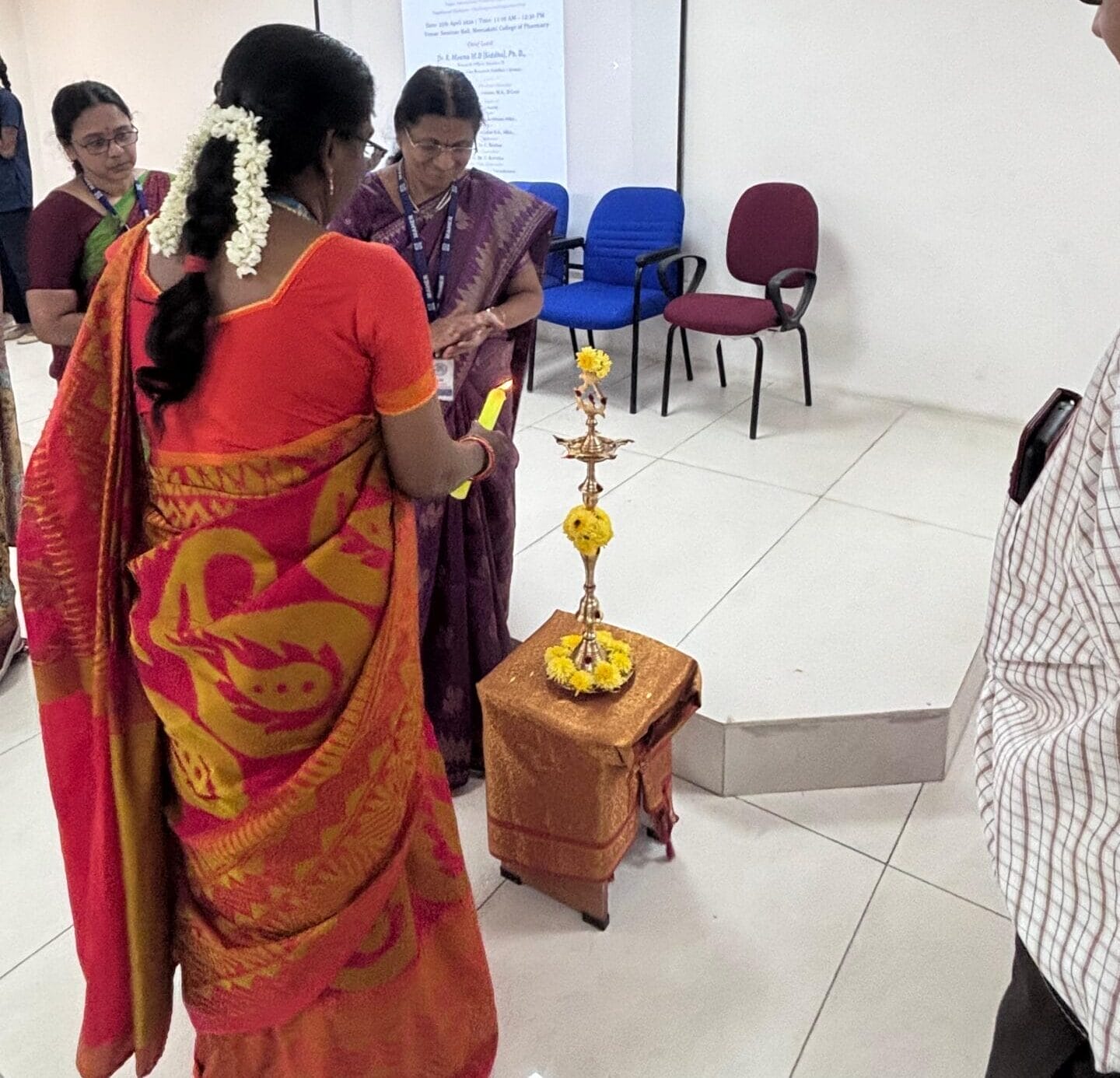 The Chief Guest, Dr. R. Meena, M.D. (Siddha), Ph.D., Research Officer and Scientist II, Central Council for Research (Siddha), Chennai, was introduced by Prof. Dr. S. Dhanalakshmi, Department of Pharmacognosy, and felicitated by Prof. Dr. L. Karpagavalli, Department of Pharmaceutics.