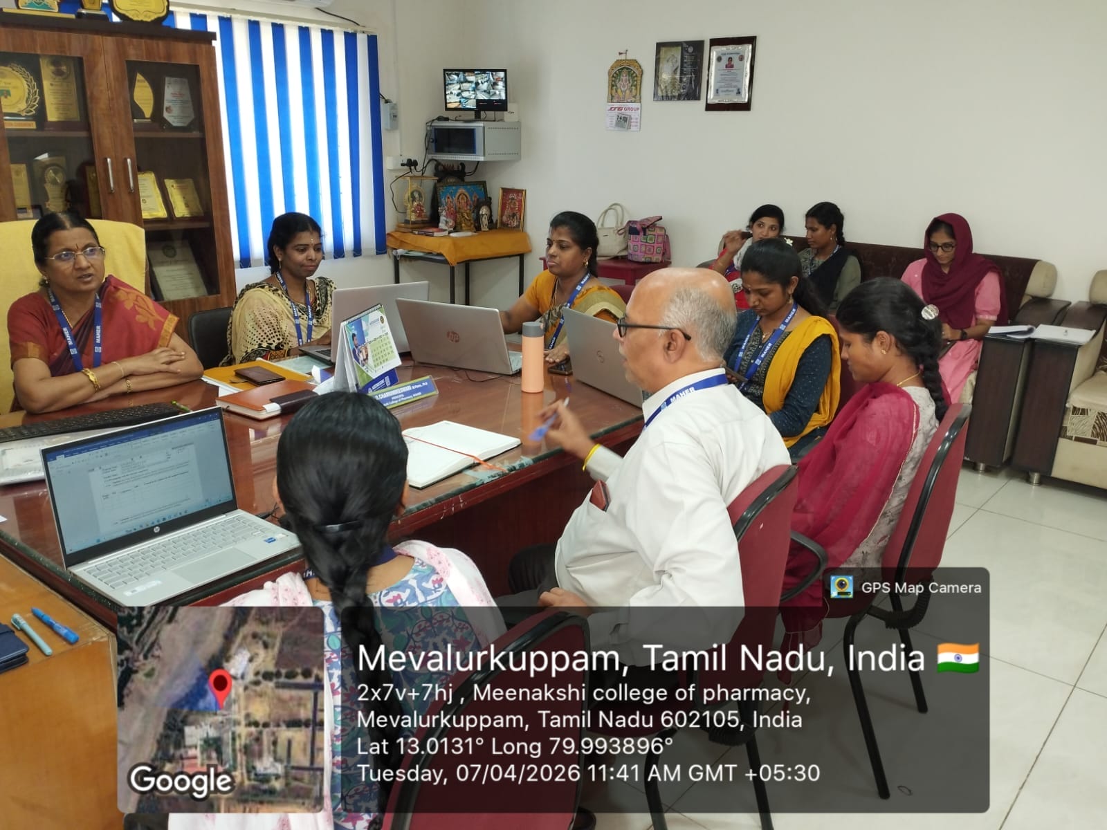 Meenakshi College of Pharmacy, Thandalam, organized a Faculty Development Programme (FDP) on “CO–PO Mapping & Outcome-Based Education (OBE)” on 7th April 2026 from 9:30 AM to 12:30 PM at Room No. 001.