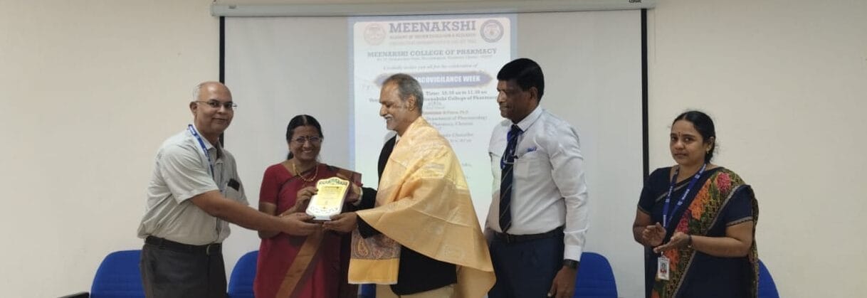 The Department of Pharmacology, Meenakshi College of Pharmacy, organized an insightful seminar on the theme “Your Safety – Click Away Report to PvPI” as part of the 5th Pharmacovigilance Week on 23rd September 2025. The event was held from 10:30 a.m. to 12:00 p.m. at the Seminar Hall, 1st Floor, Meenakshi Faculty of Pharmacy, Chennai, and witnessed enthusiastic participation from faculty, students, and distinguished guests.