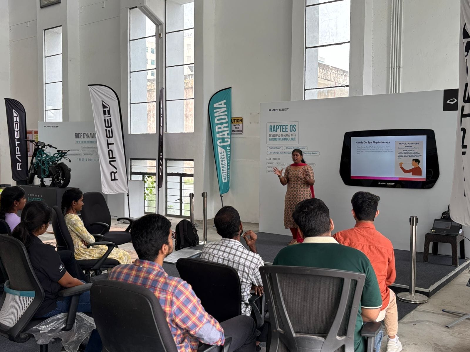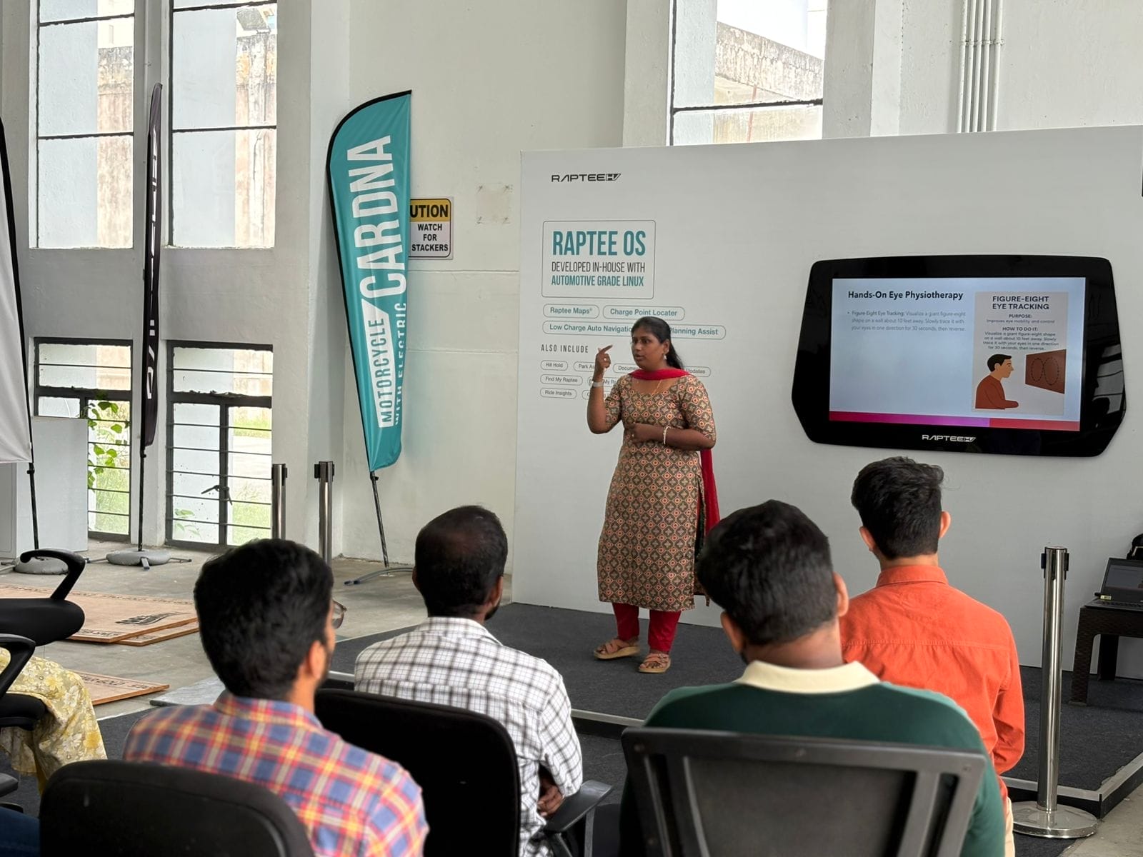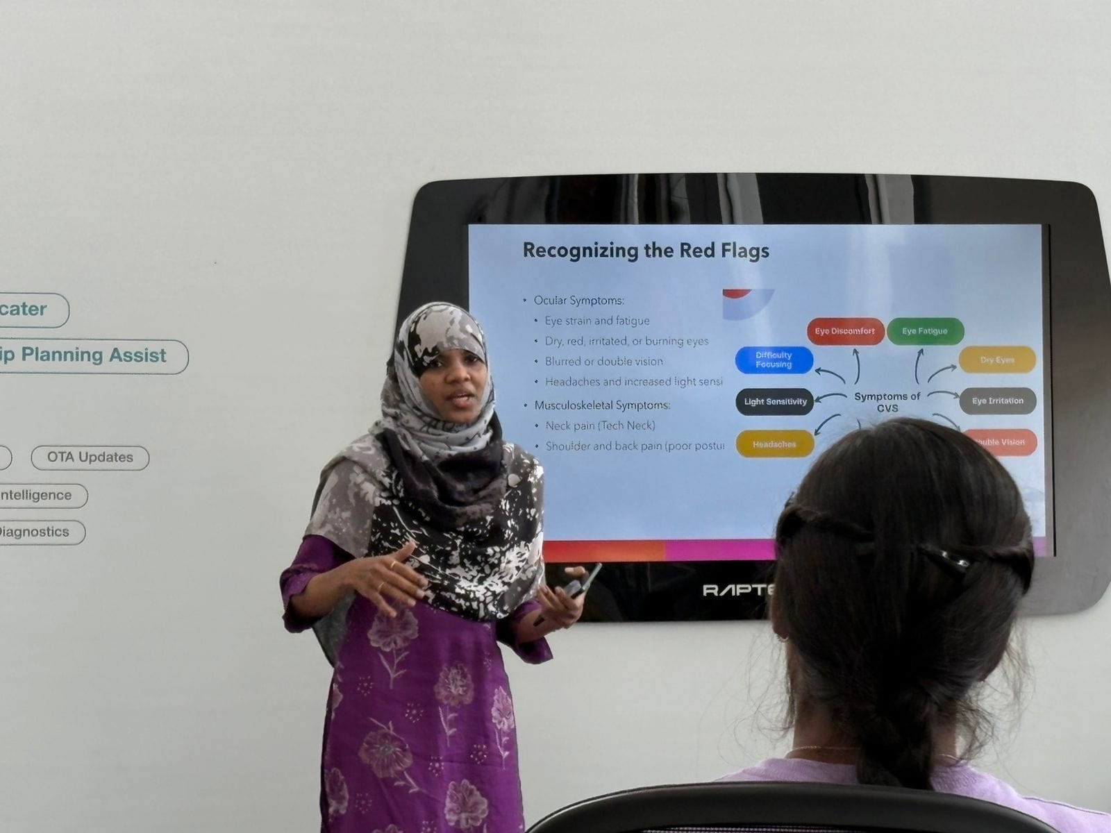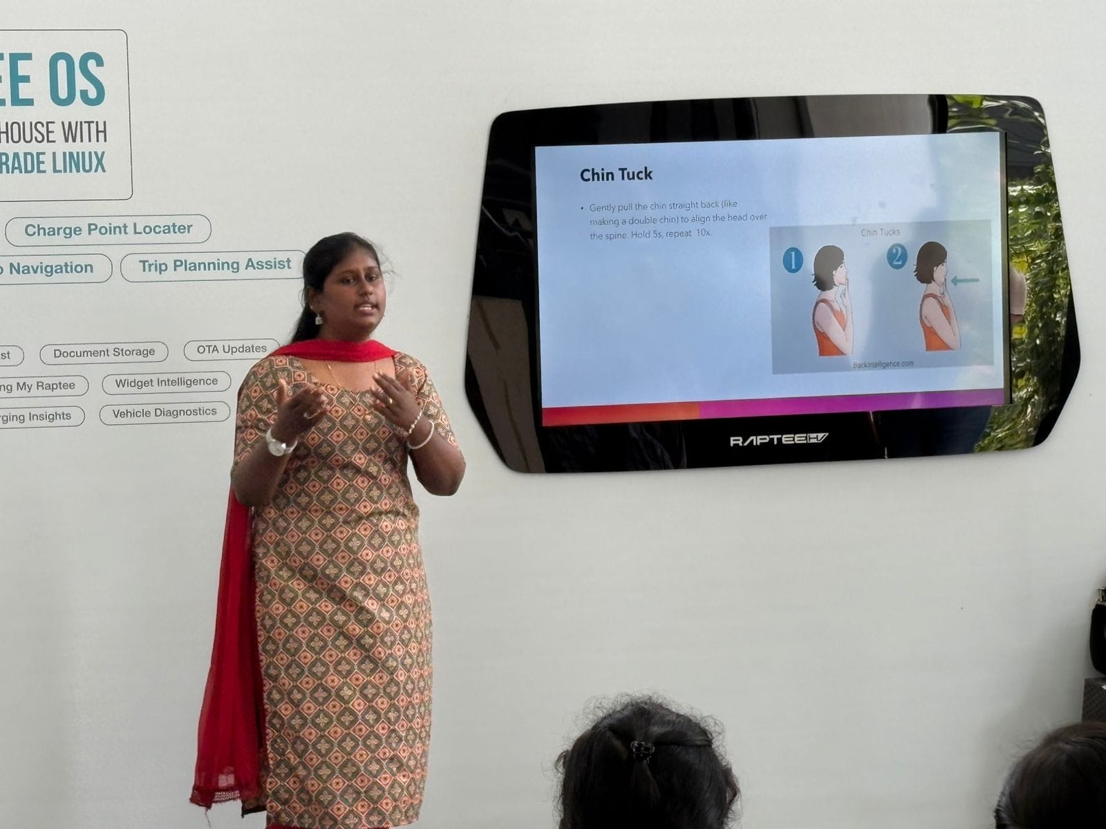 The Postgraduate students from the Department of Physiotherapy – Pediatric and Neonatal Science, Meenakshi College of Physiotherapy, organized a corporate health awareness session at Raptee.HV Headquarters, Mugalivakkam, Chennai, on 13 December 2025. The programme was conducted by Safina Amrin A. and Poojasree M. and benefited 25 corporate employees, with the objective of promoting occupational health and preventive care in technology-driven work environments.